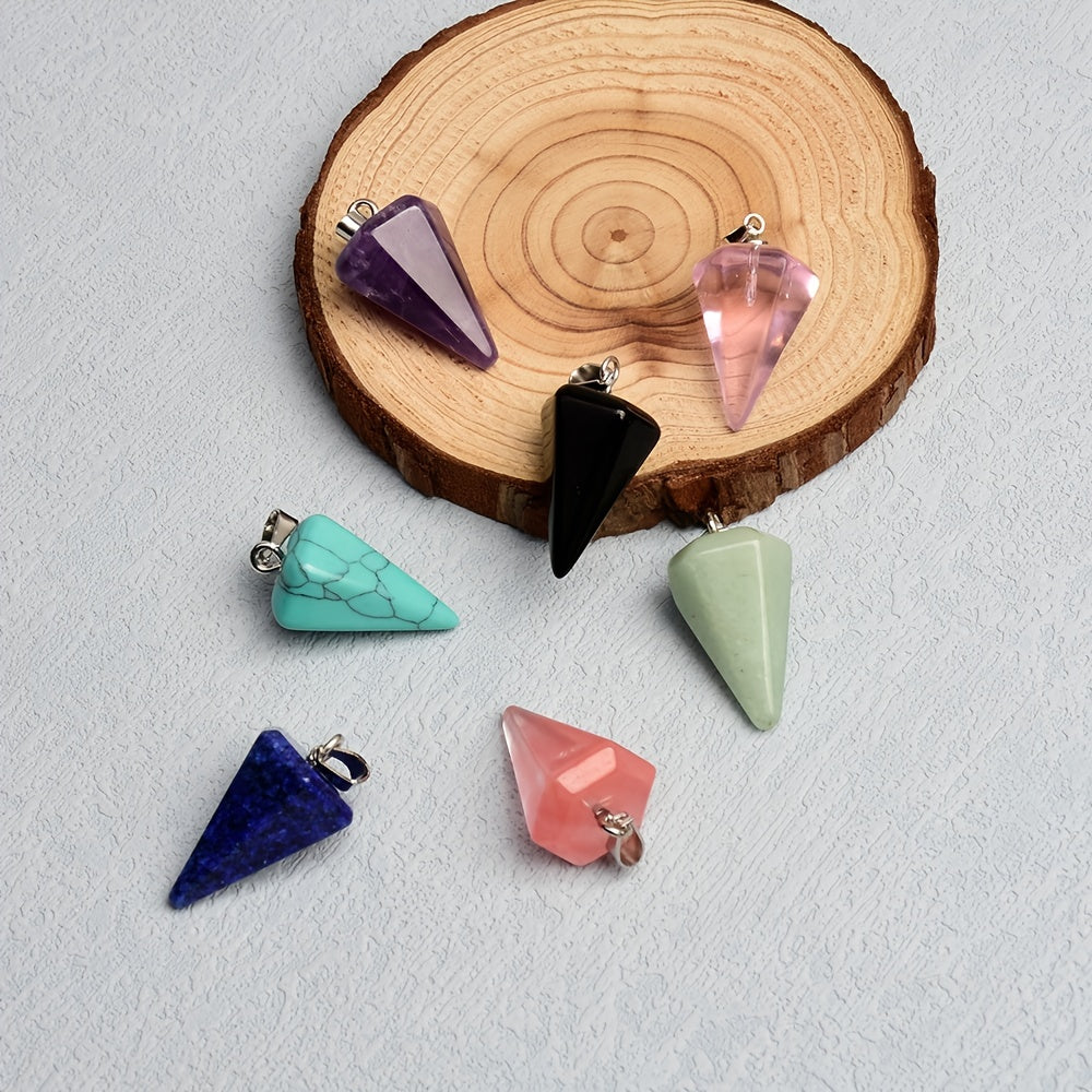 This natural stone triangle pendulum line cone pendant is perfect for creating unique necklaces and jewelry pieces. Each stone is assorted and adds a touch of natural beauty to your accessories.