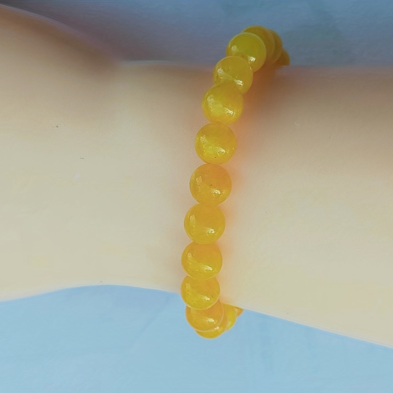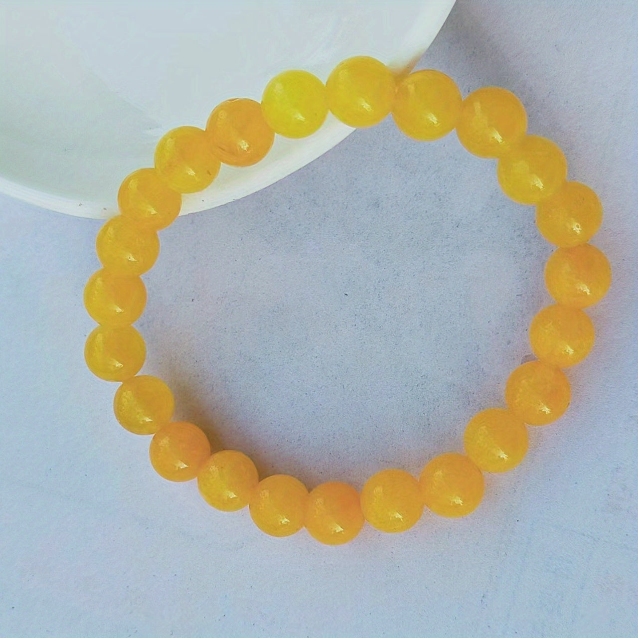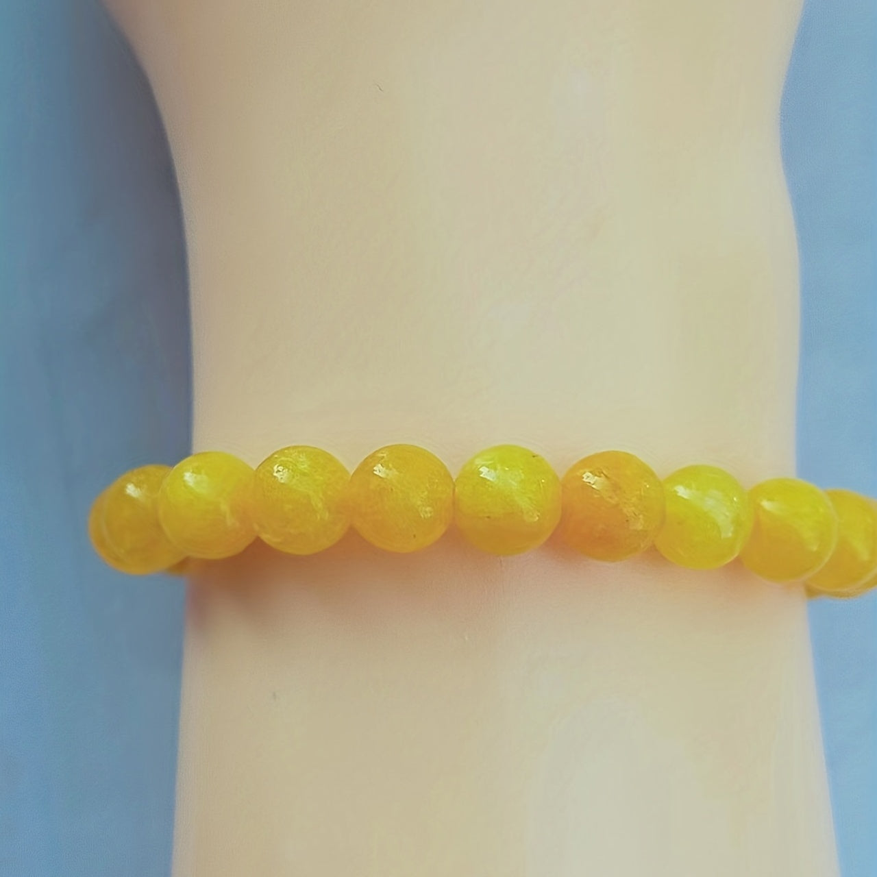 This bracelet features natural stone yellow beads with an 8mm diameter, making it a perfect gift, ornament, accessory, or jewelry for boys and girls.