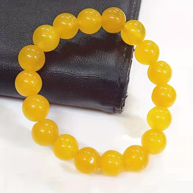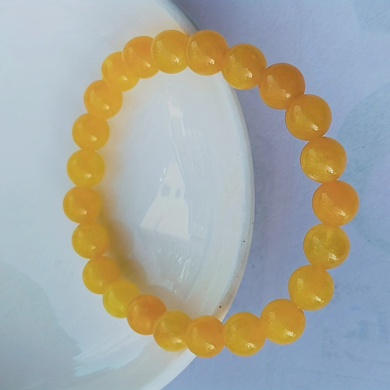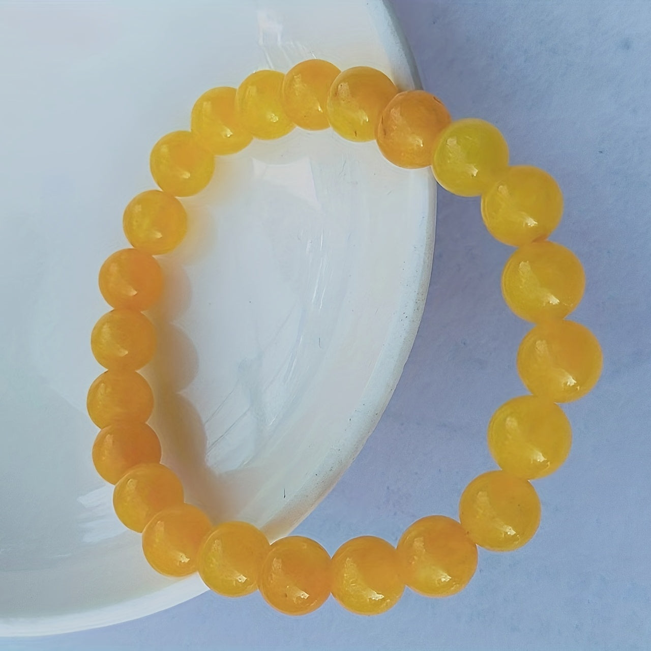 This bracelet features natural stone yellow beads with an 8mm diameter, making it a perfect gift, ornament, accessory, or jewelry for boys and girls.