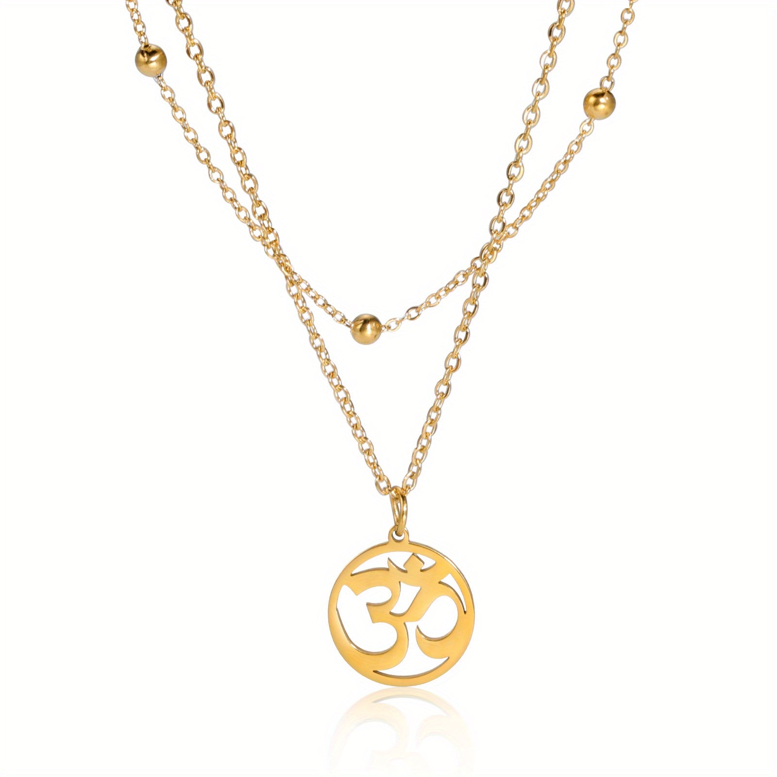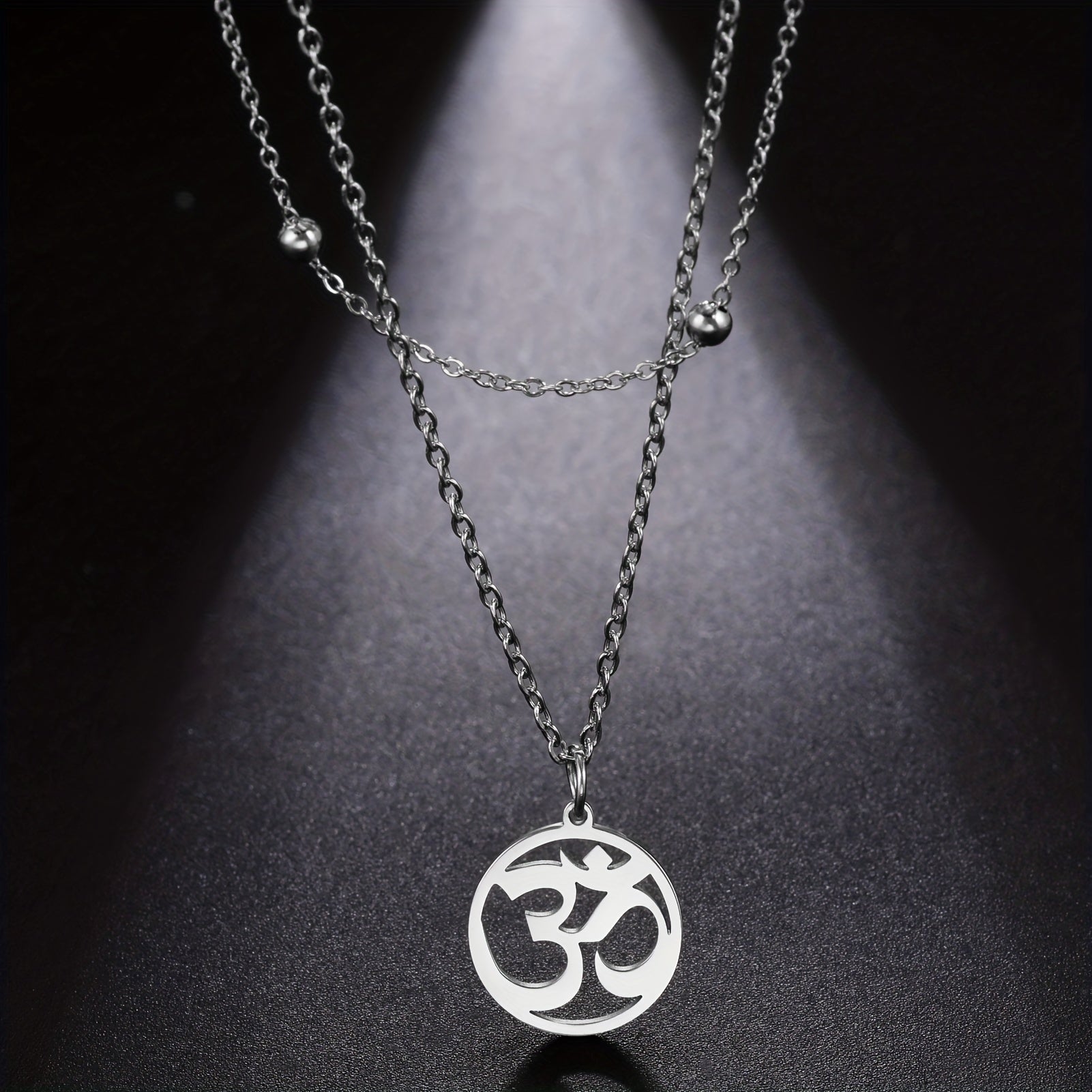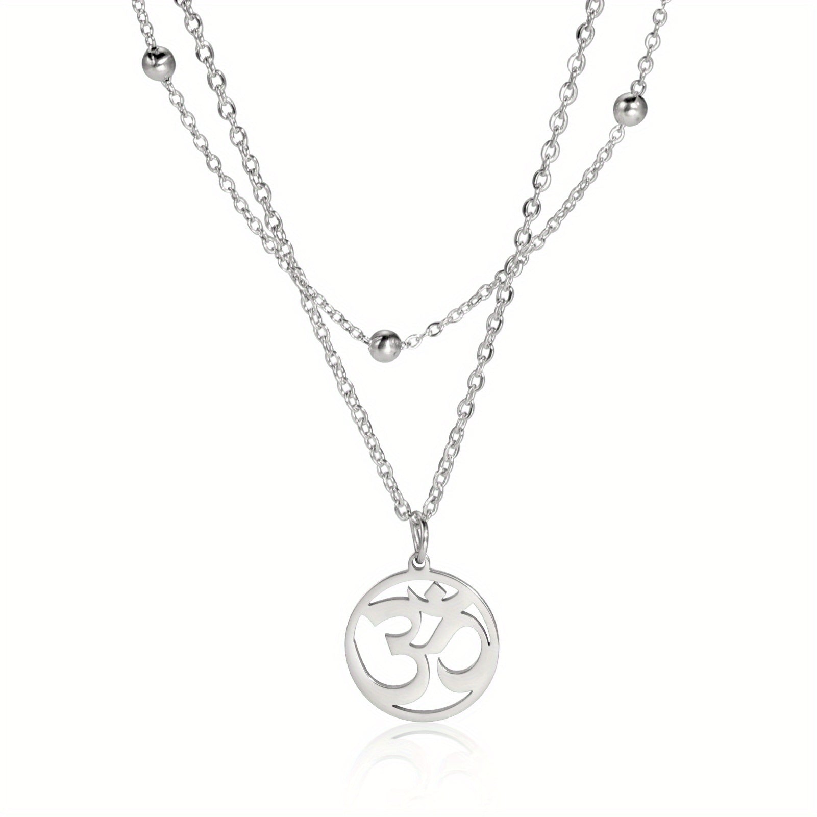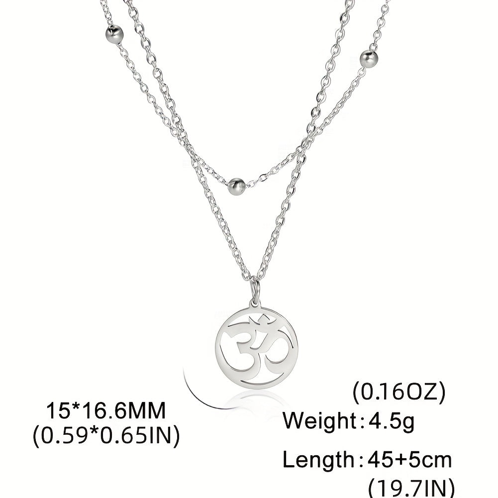 This beautiful necklace features the Om yoga symbol in a round stainless steel pendant. It makes a meaningful jewelry gift for yoga enthusiasts.