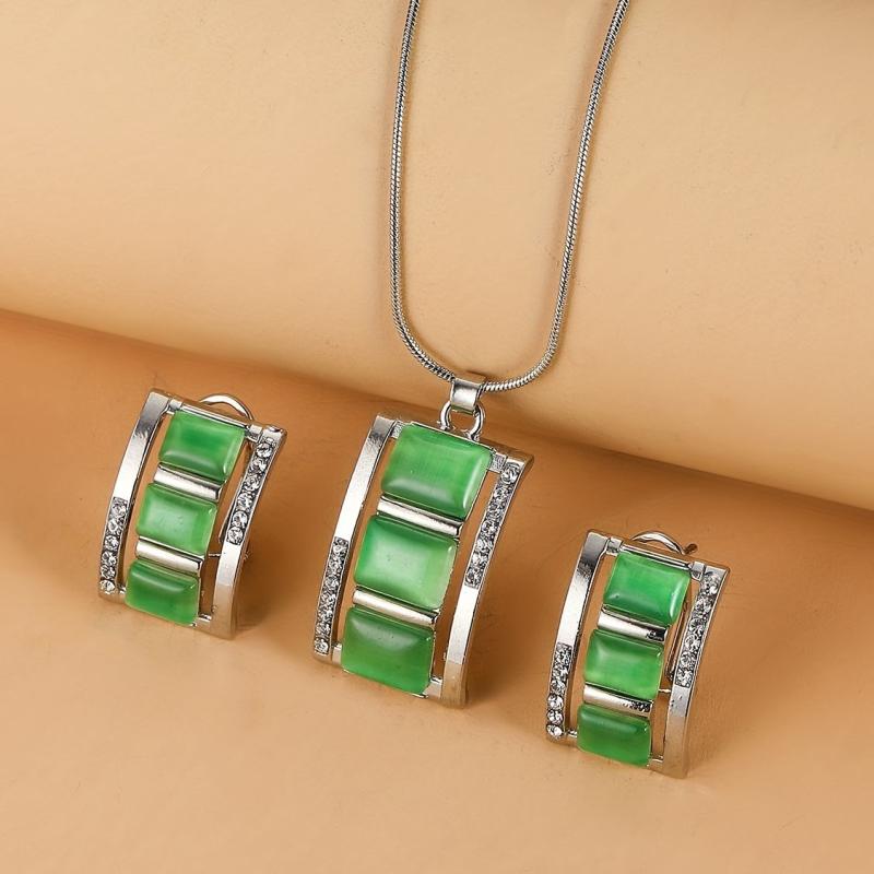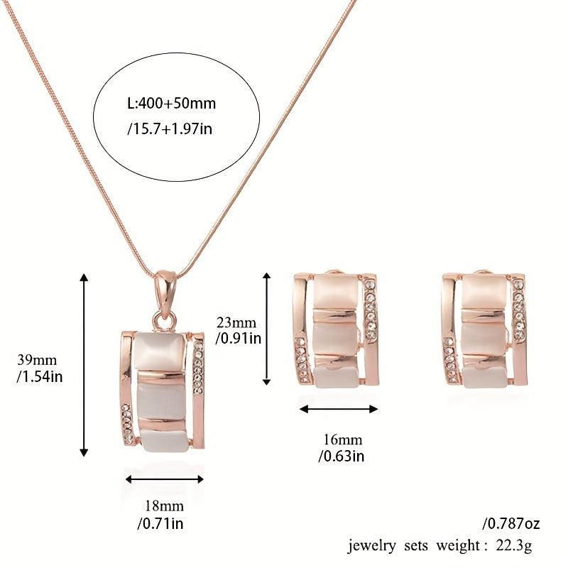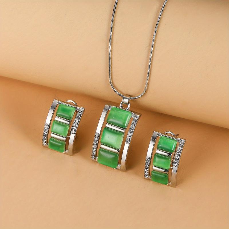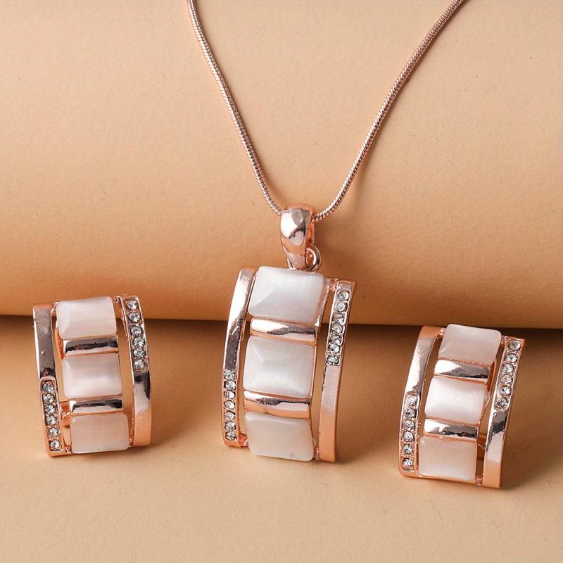 Complete your look with this stunning opal necklace and earrings set. The rectangular opal pendant necklace and stud earrings are accented with rhinestones for a touch of sparkle.