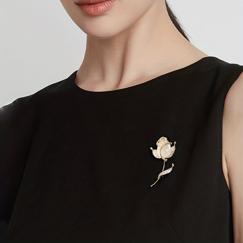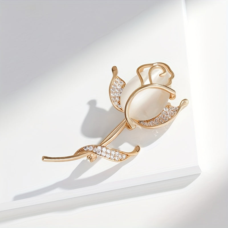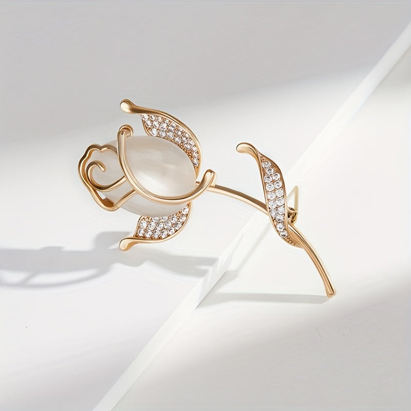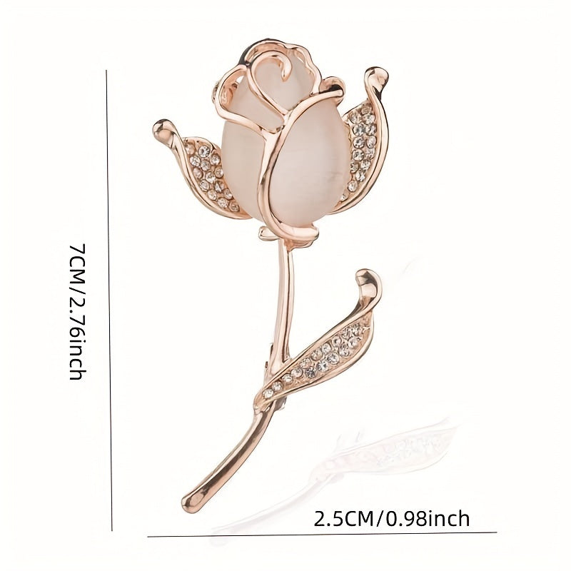 Elegant women's brooch featuring opal rose design with sparkling rhinestones. Made of high-quality alloy materials.