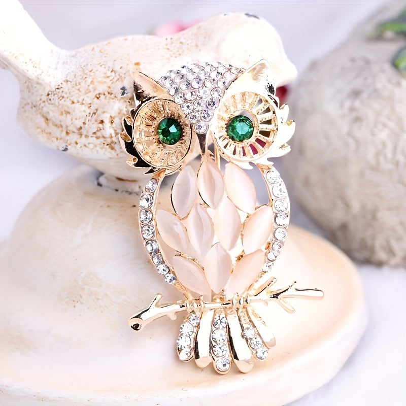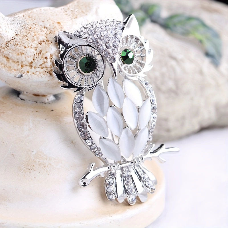 Add a touch of vintage charm with this owl opal brooch featuring rhinestones. Perfect for clothing accessories.