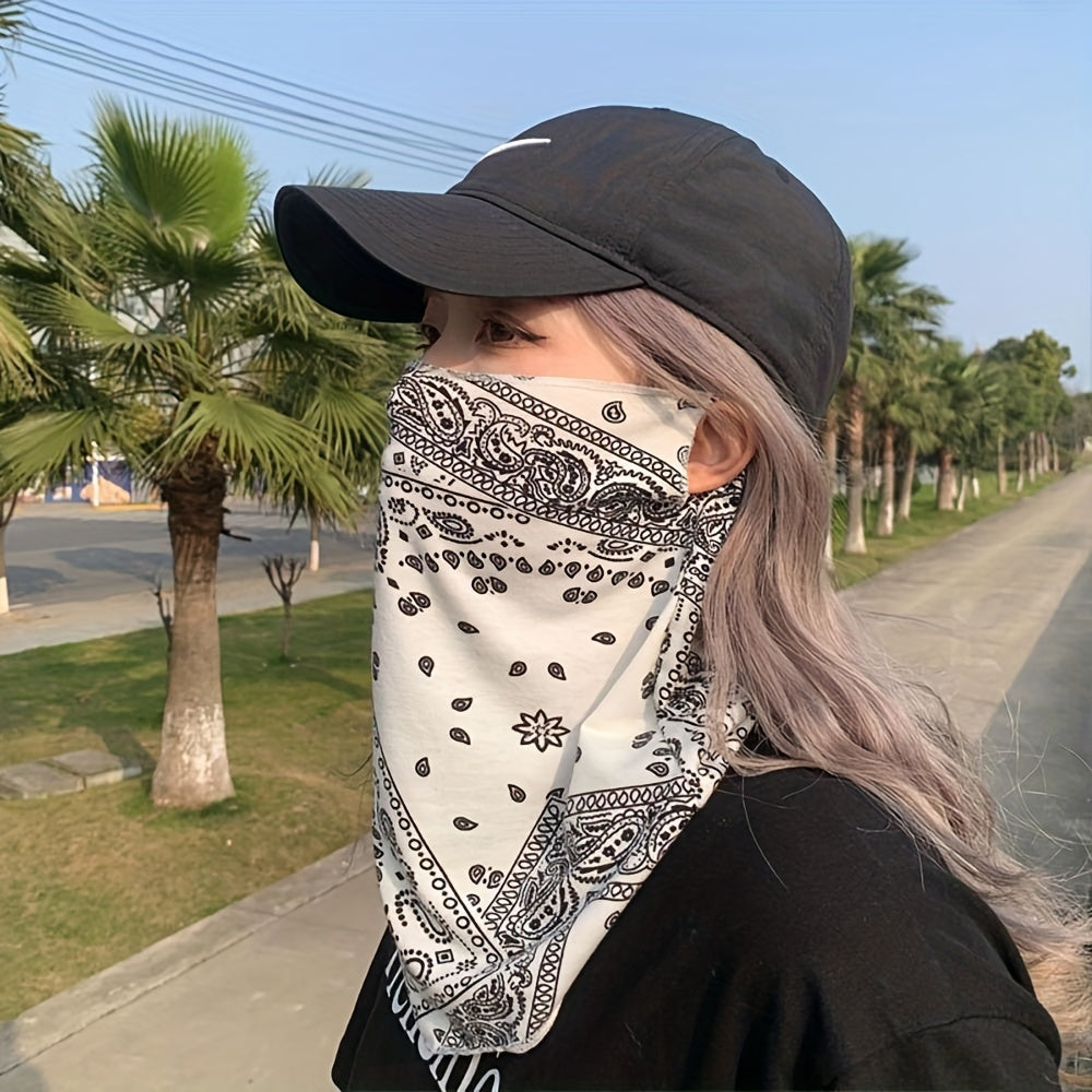 Stay stylish and protected with this paisley print ice silk mask. Perfect for outdoor sports, driving, and casual wear. It provides comfortable breathability and features ear hooks for a secure fit.