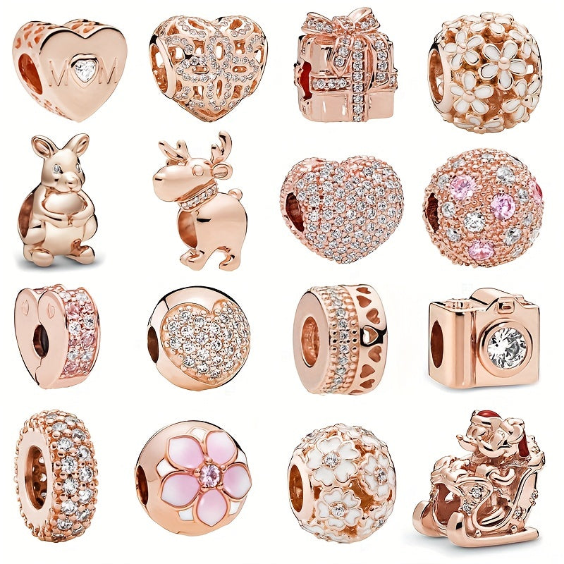 Create unique and charming DIY projects with this rose golden artificial diamond beaded set featuring cartoon sheep, rabbit, camera, and flower designs.