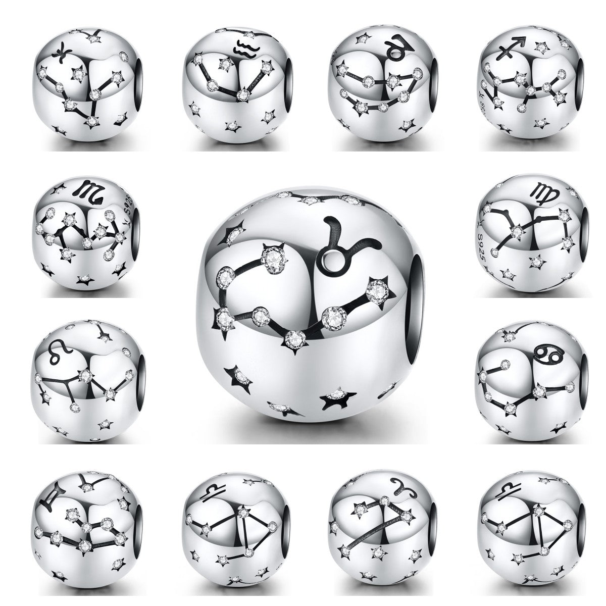 PANPOKI 925 Silver Constellation Beads Charms for Jewelry