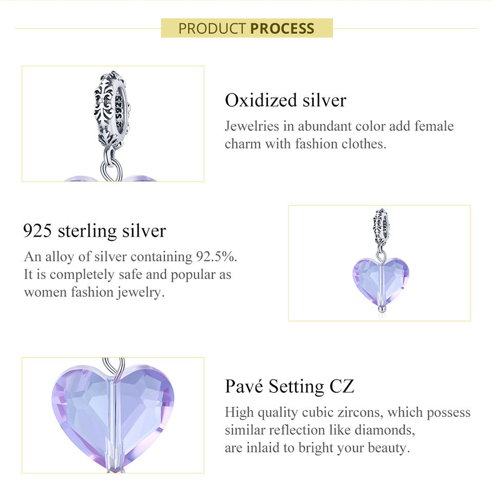 Decorate your jewelry with this 925 sterling silver heart-shaped beads charm pendant, ideal for bracelets, necklaces, bangles, and other DIY projects. Add a touch of romance to your accessories.
