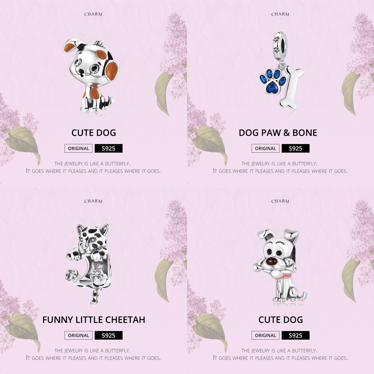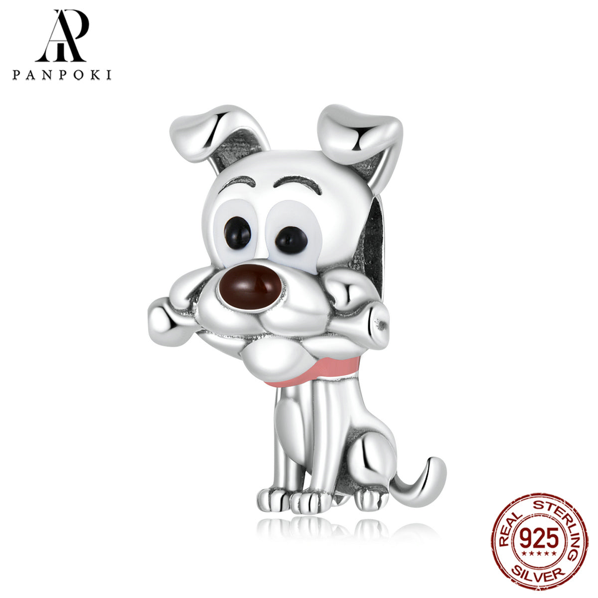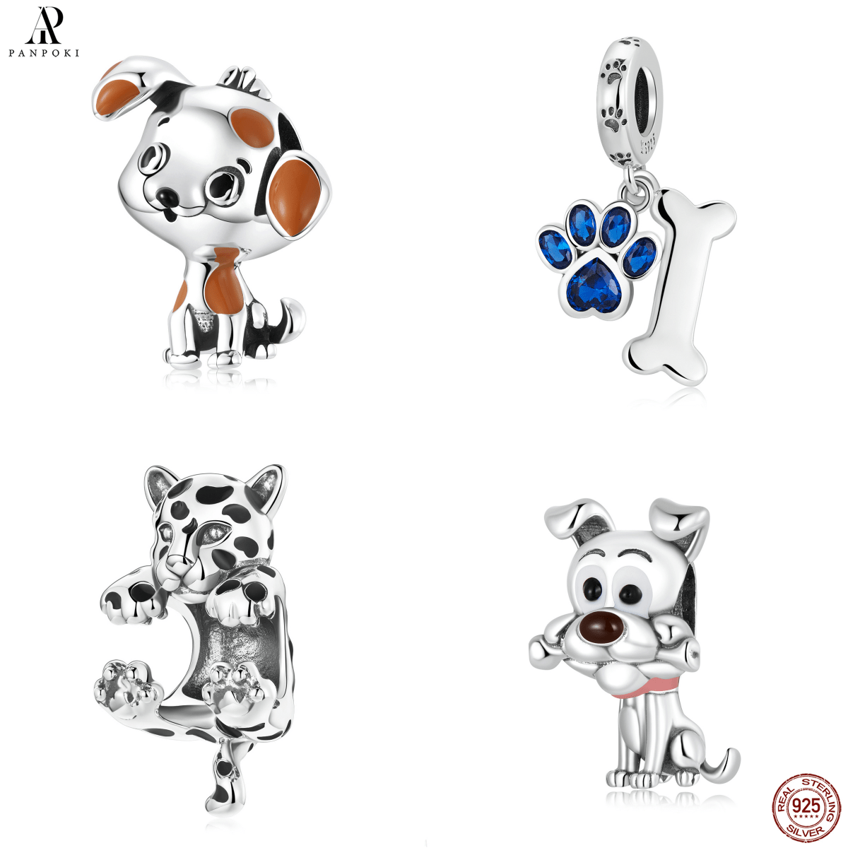 PANPOKI 925 Sterling Silver Dog Leopard Dog Bone Animal Beads Charms