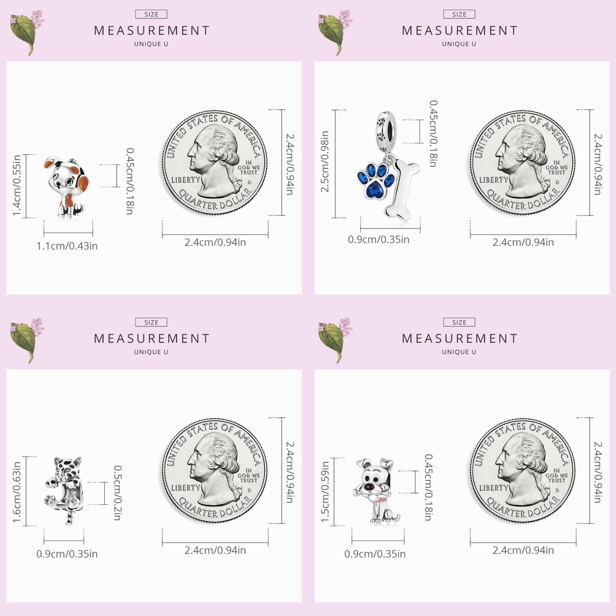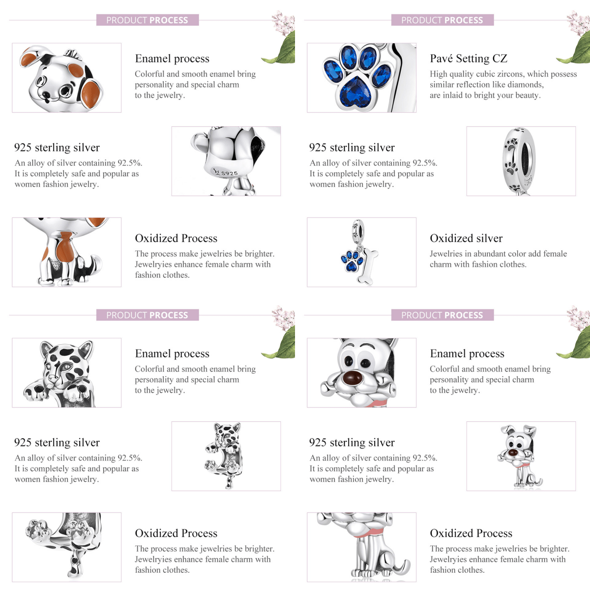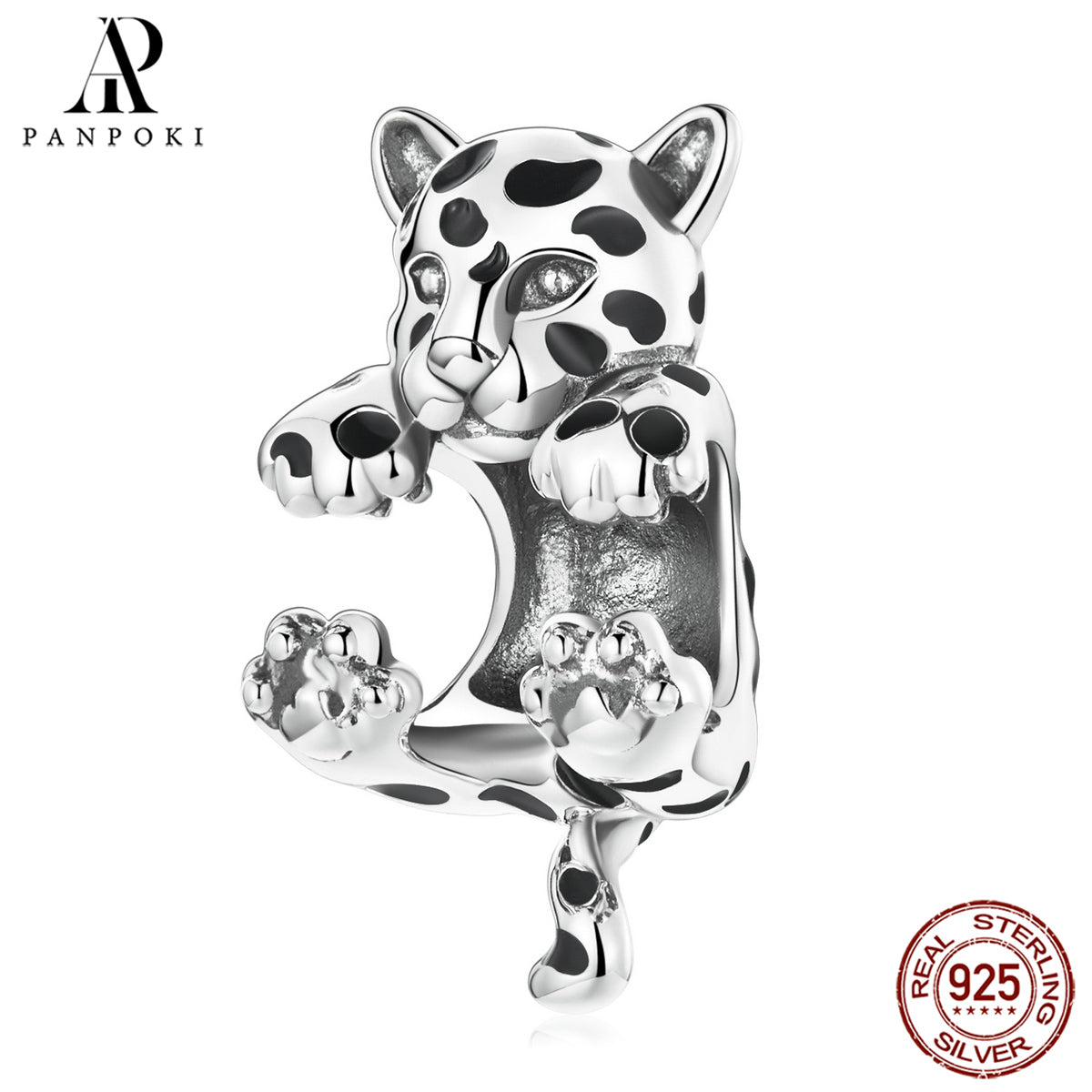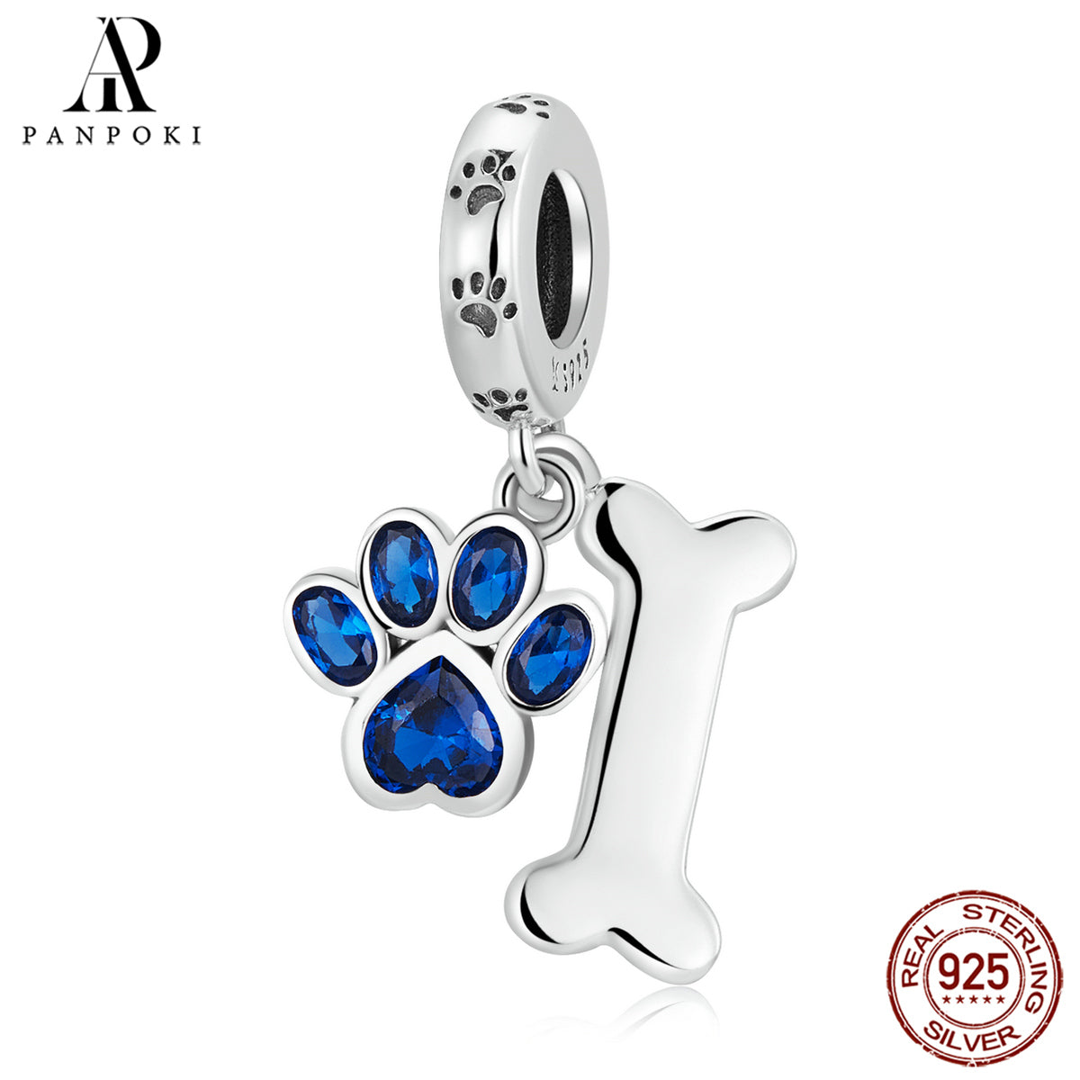 PANPOKI 925 Sterling Silver Dog Leopard Dog Bone Animal Beads Charms