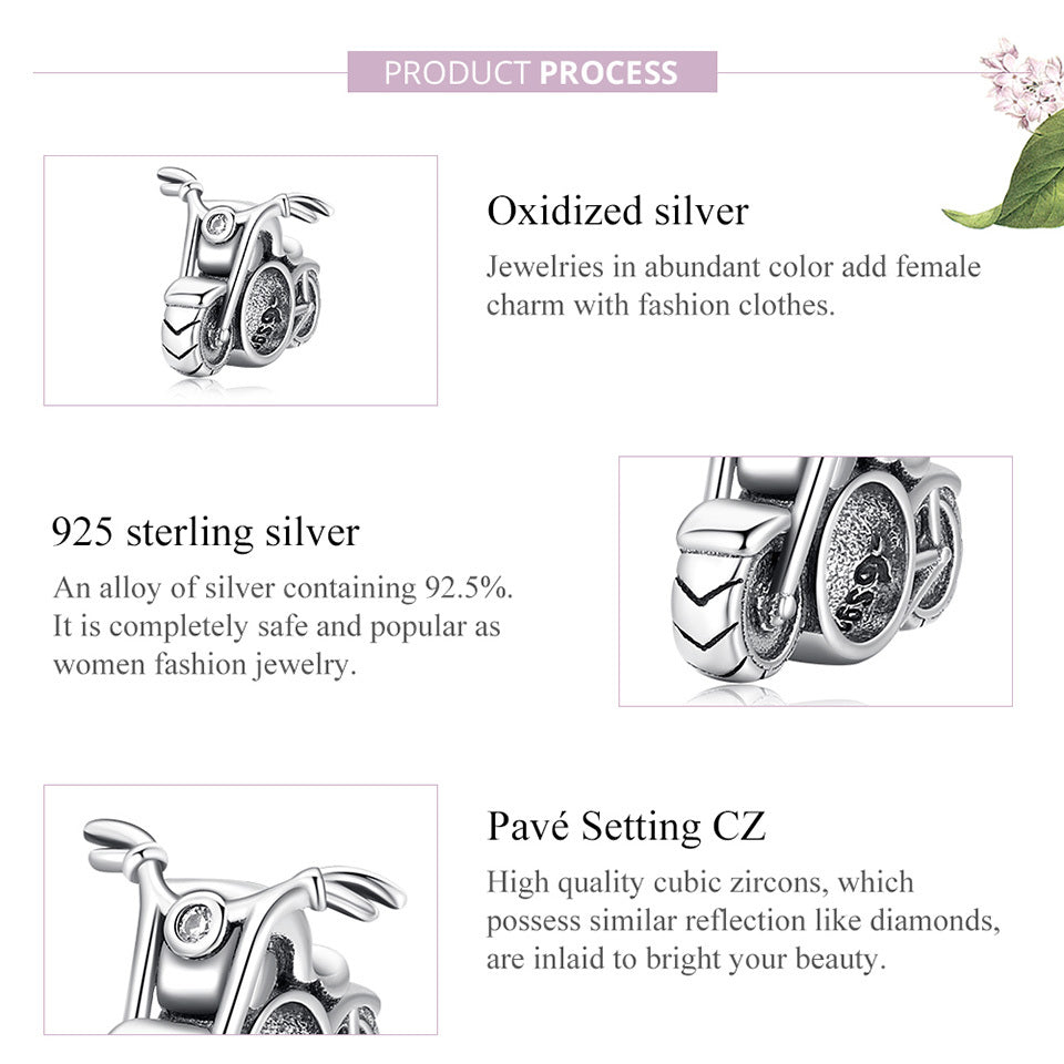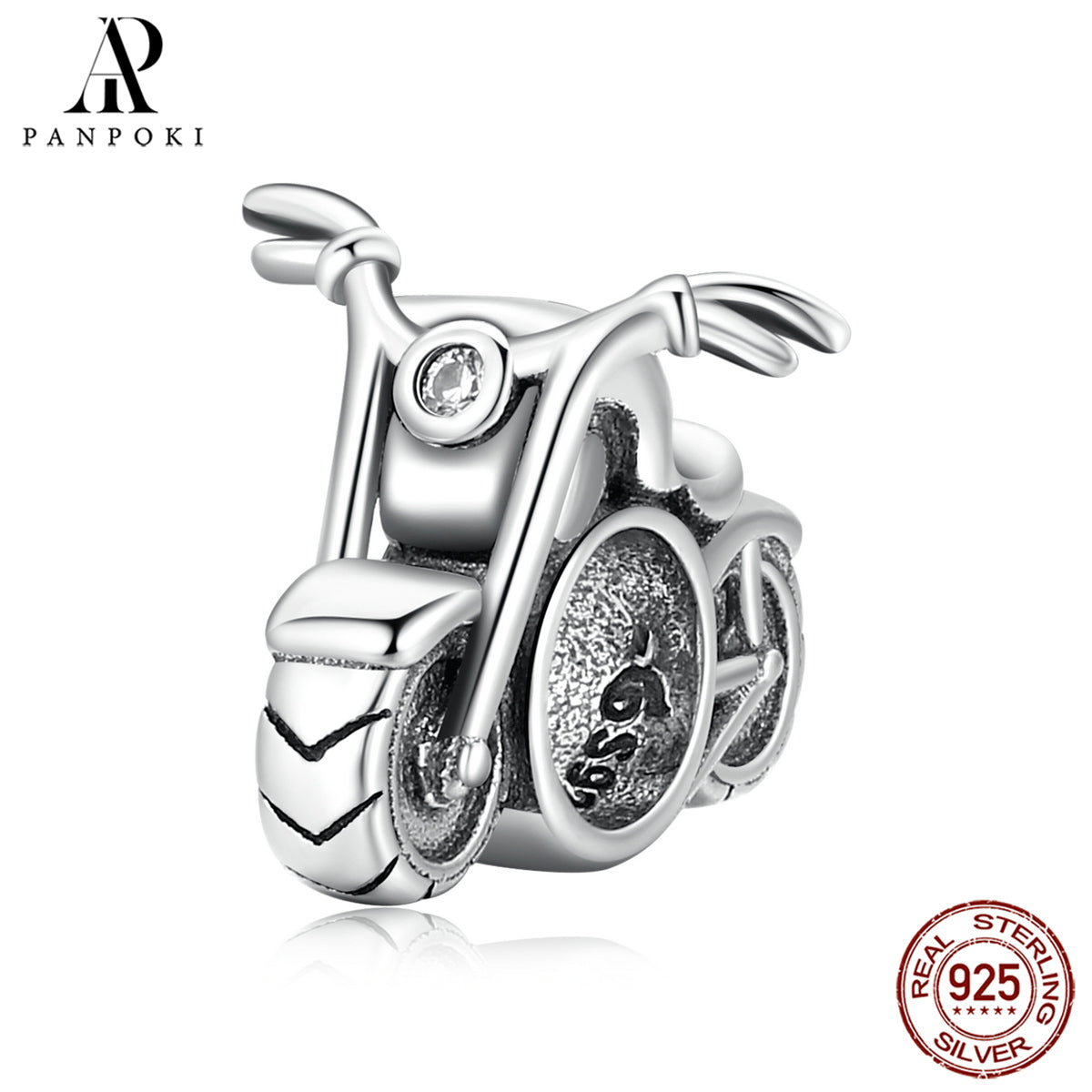 PANPOKI 925 Sterling Silver Motorcycle Style Beads Charms