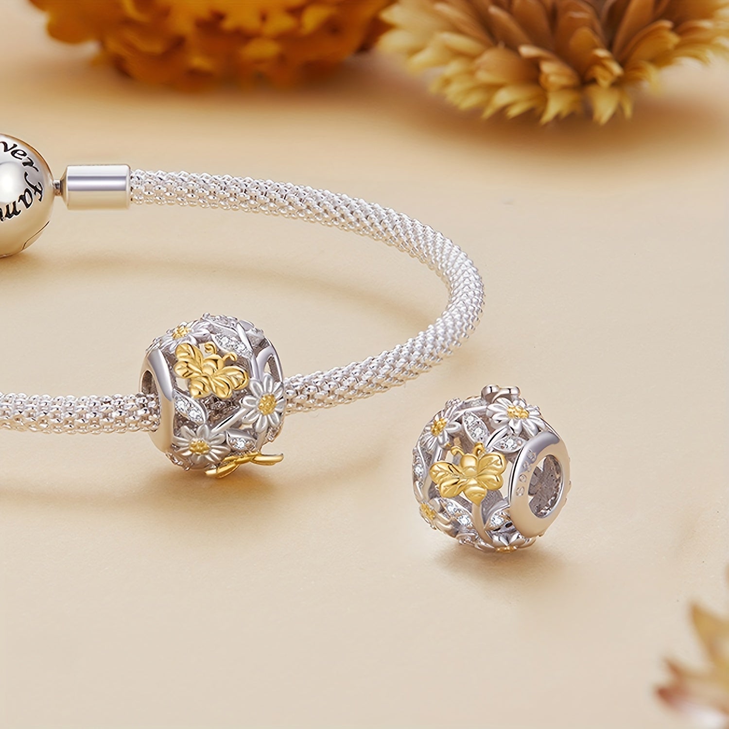 • 925 Sterling Silver Daisy & Golden Bee beads