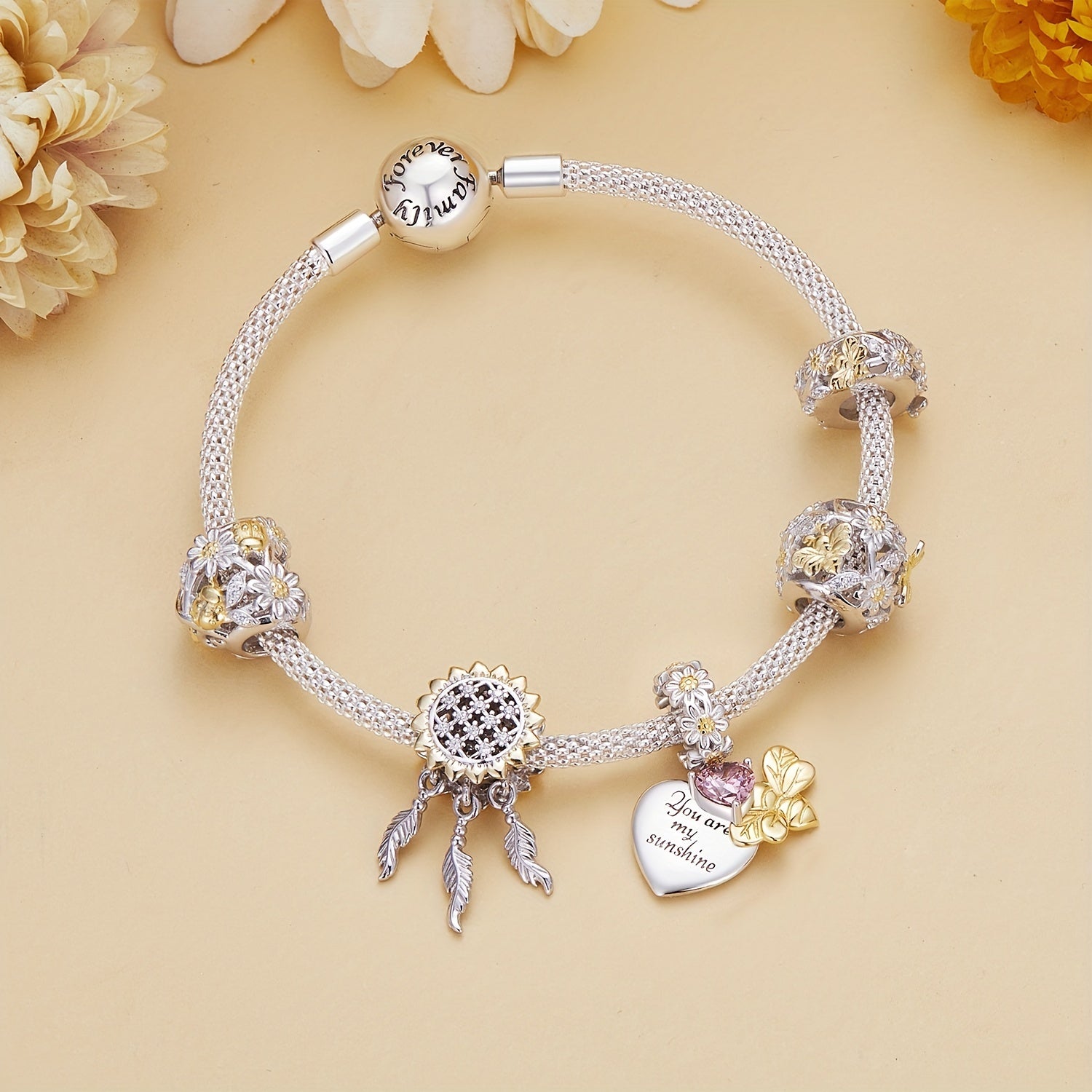 Beautiful 925 Sterling Silver Daisy & Golden Bee beads designed for women's bracelets and bangles. Create your own fine jewelry with these exquisite beads.