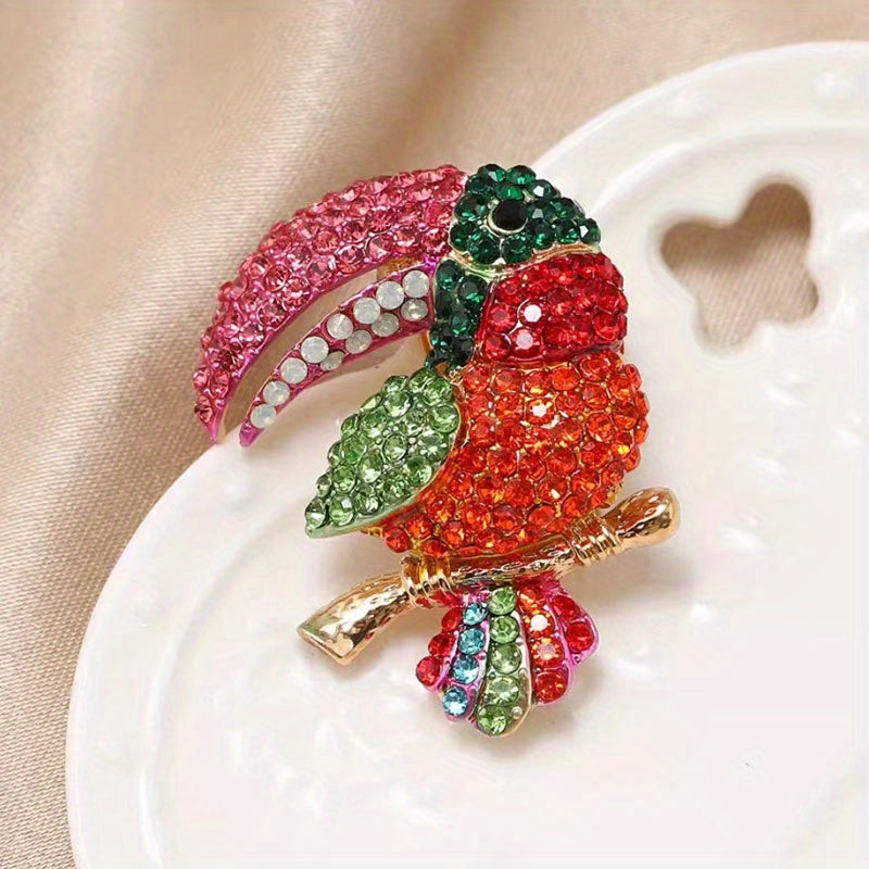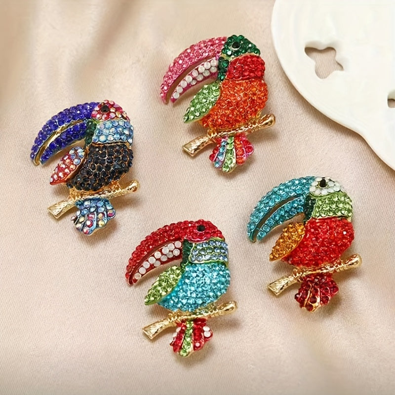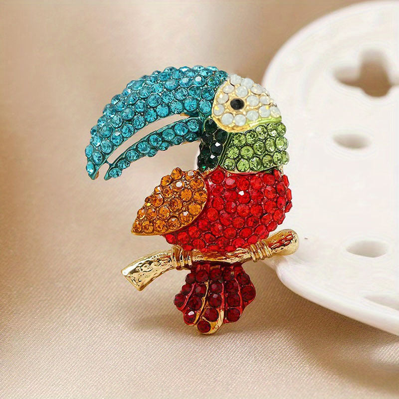 Enhance your outfit with this stunning Rhinestone Birds Brooch featuring a parrot design. Perfect for adding a touch of elegance to your coat, scarf, or suit. The exquisite craftsmanship and sparkling rhinestones make it a standout accessory.