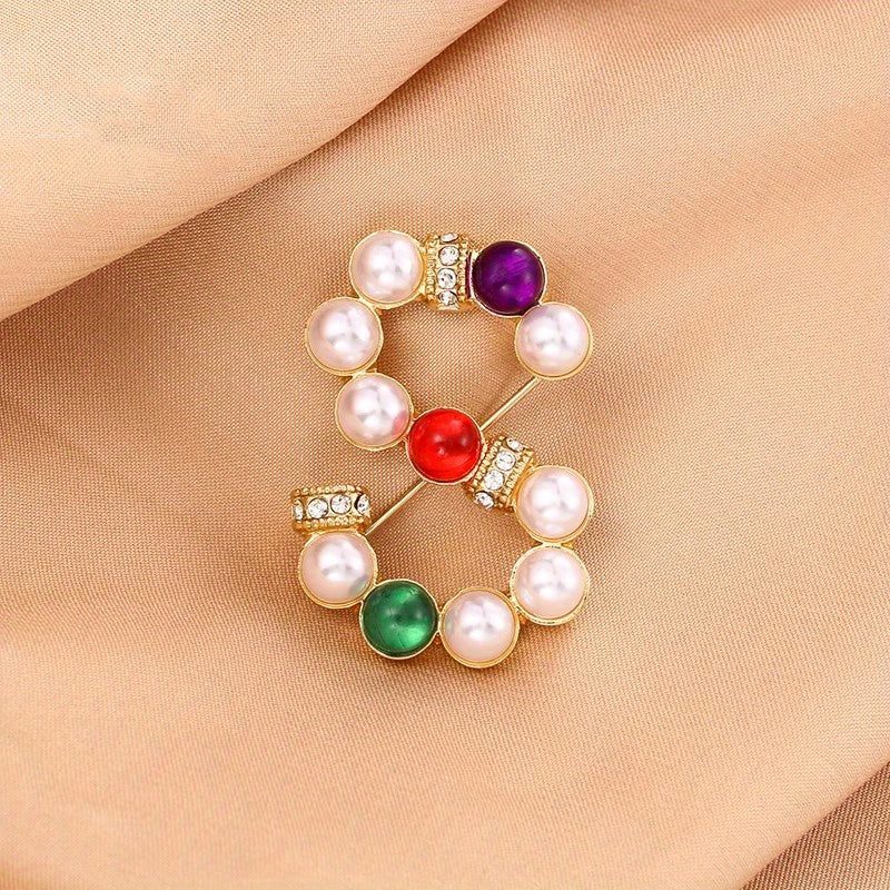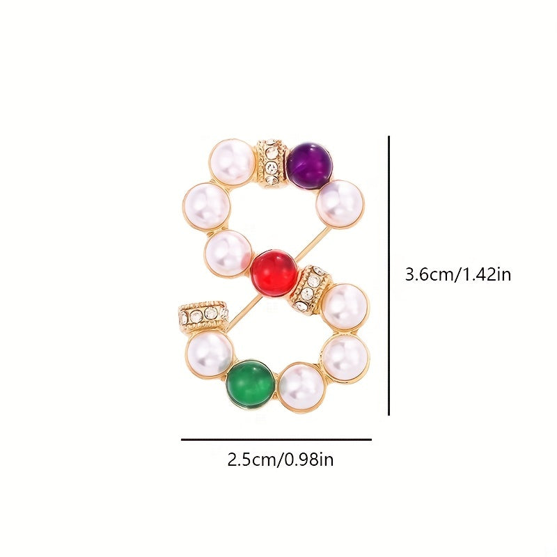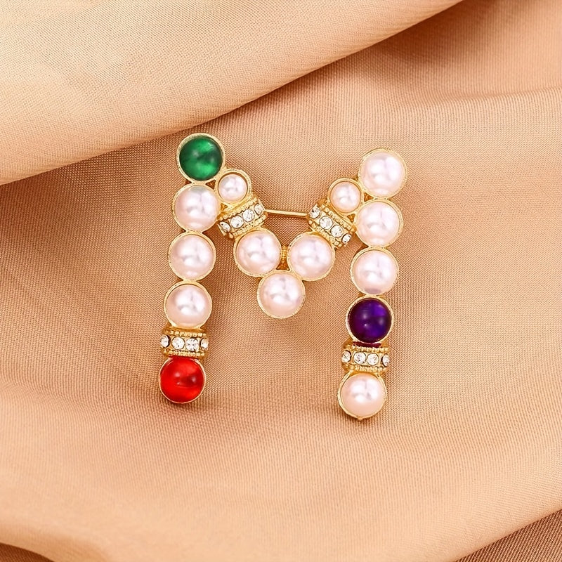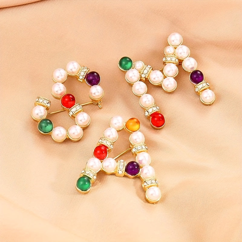 Add a touch of elegance to your coat or suit with this faux pearl and rhinestone letters brooch. It's a stylish clothing accessory that can also be worn as a corsage.