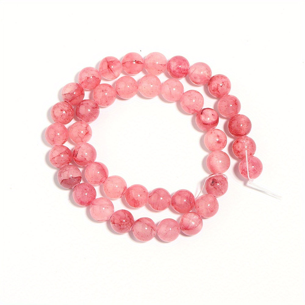 Create stunning jewelry with this strand of pink natural jade beads. The smooth round beads come in sizes ranging from 4mm to 12mm, perfect for making bracelets or necklaces.