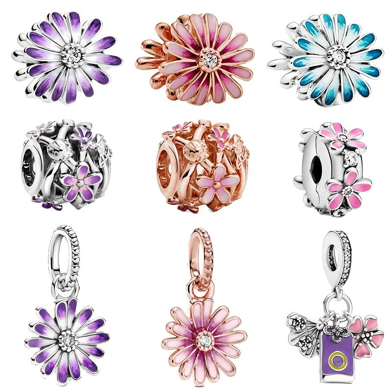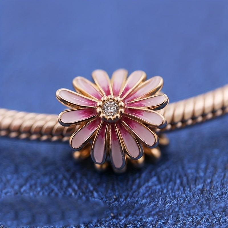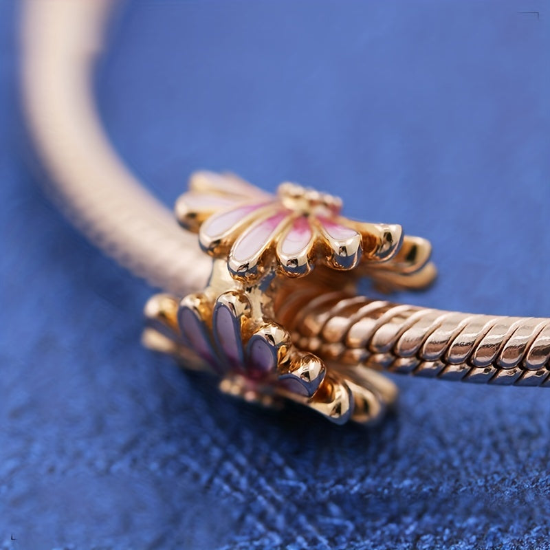 Add a touch of elegance to your jewelry with this beautiful pink and purple daisy flower charm. This charm is compatible with 3-4mm snake bracelets and all kinds of necklaces.