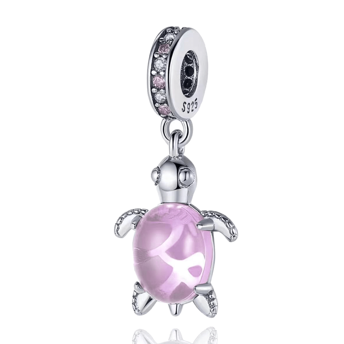Add a touch of charm to your bracelet or necklace with this lovely pink rhinestone sea turtle pendant. Perfect for DIY jewelry projects.