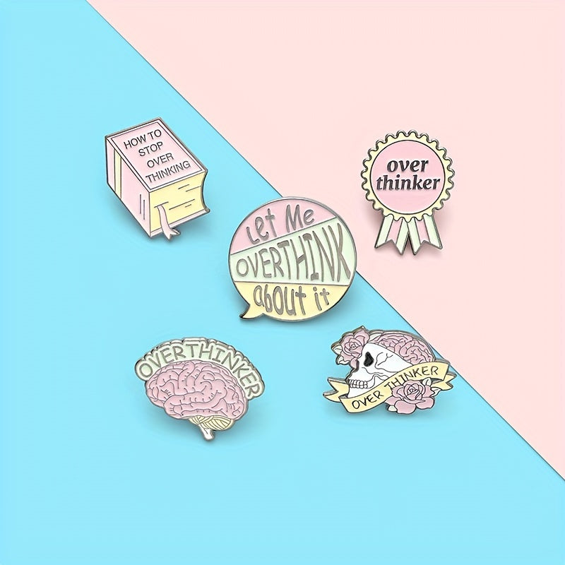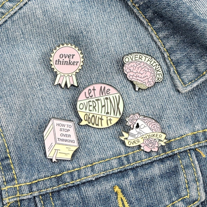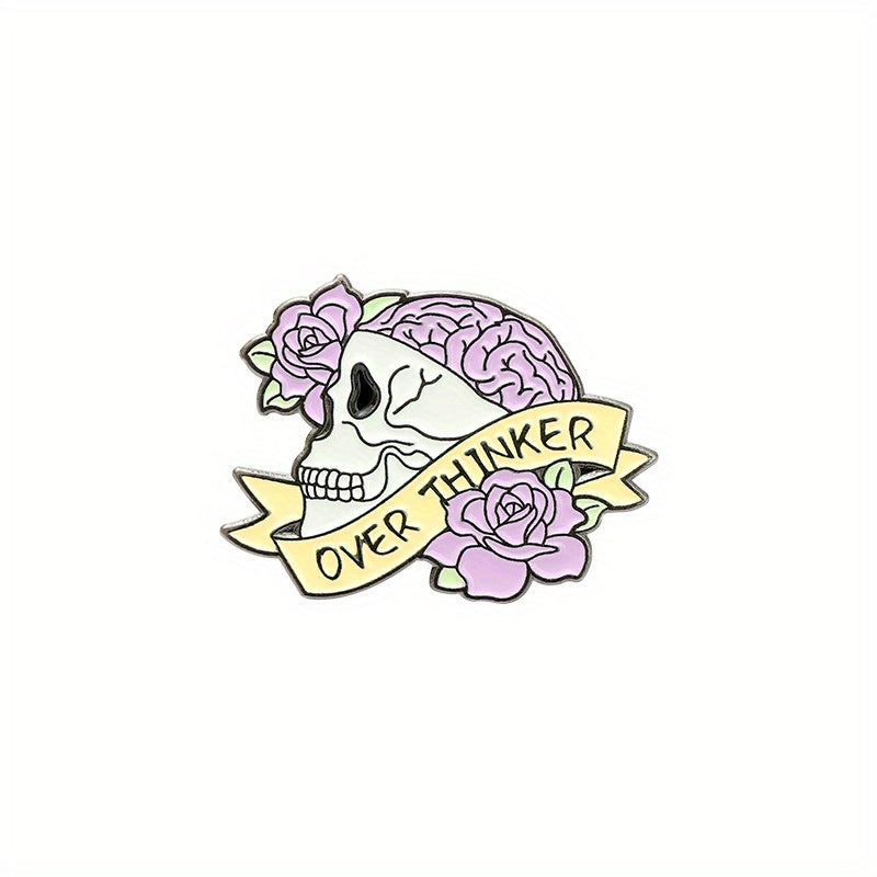 Add a quirky touch to your outfit with this pink skull brooch pin that humorously represents overthinking and anxiety.