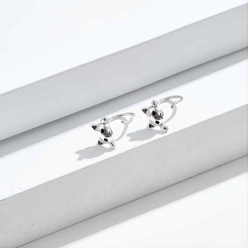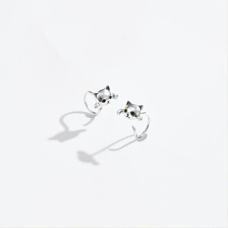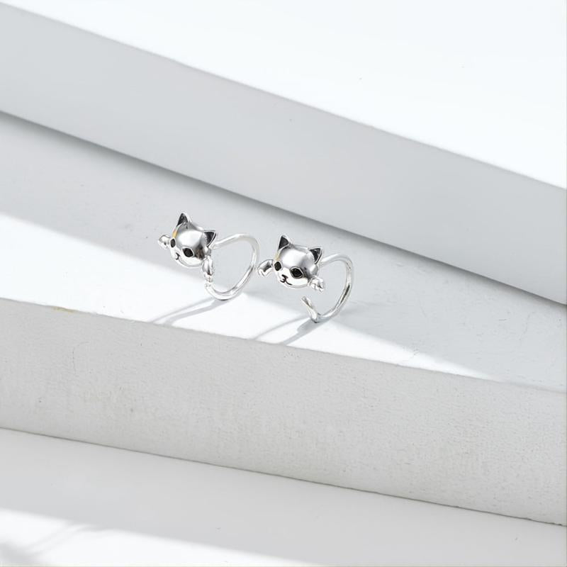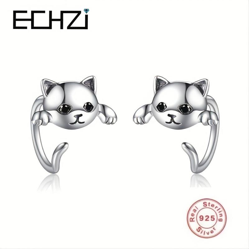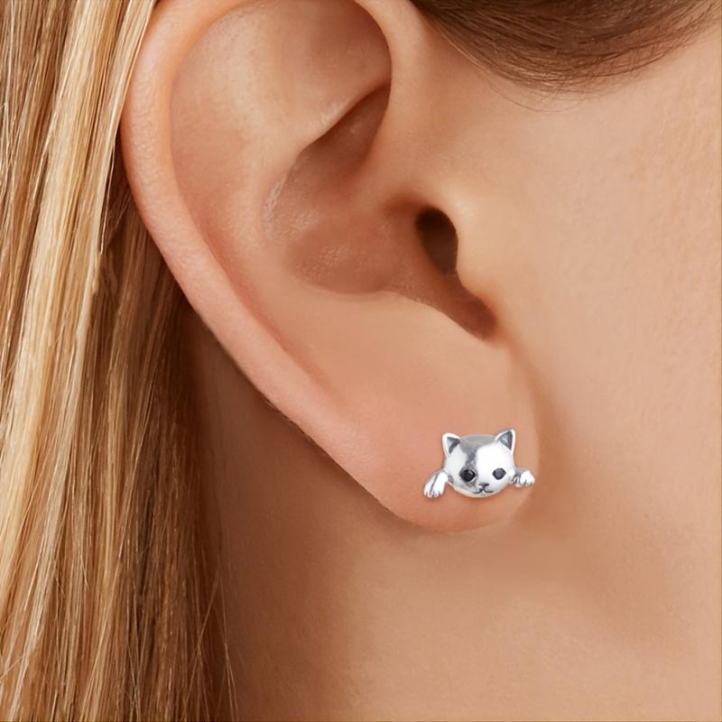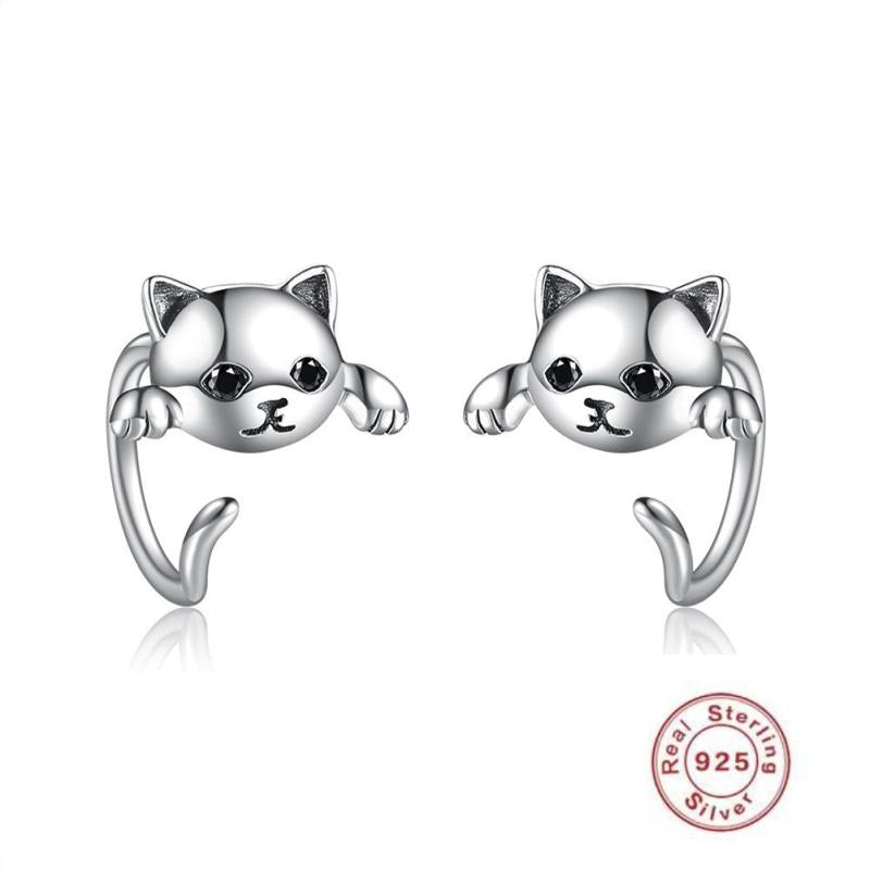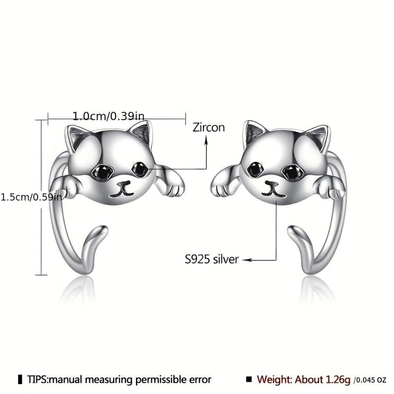 These adorable cat earrings are made of 925 sterling silver plated with platinum, featuring cubic zirconia for added sparkle. They are hypoallergenic and perfect for women who love animals.