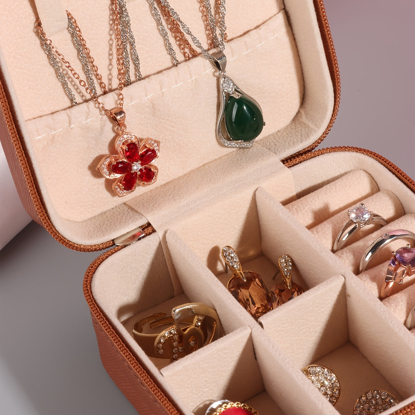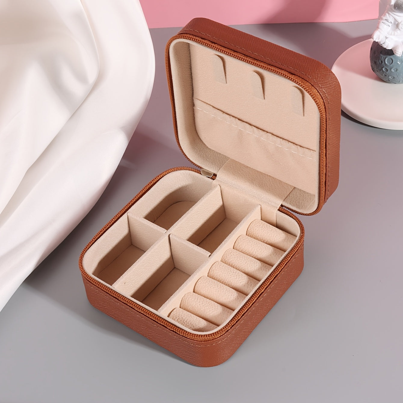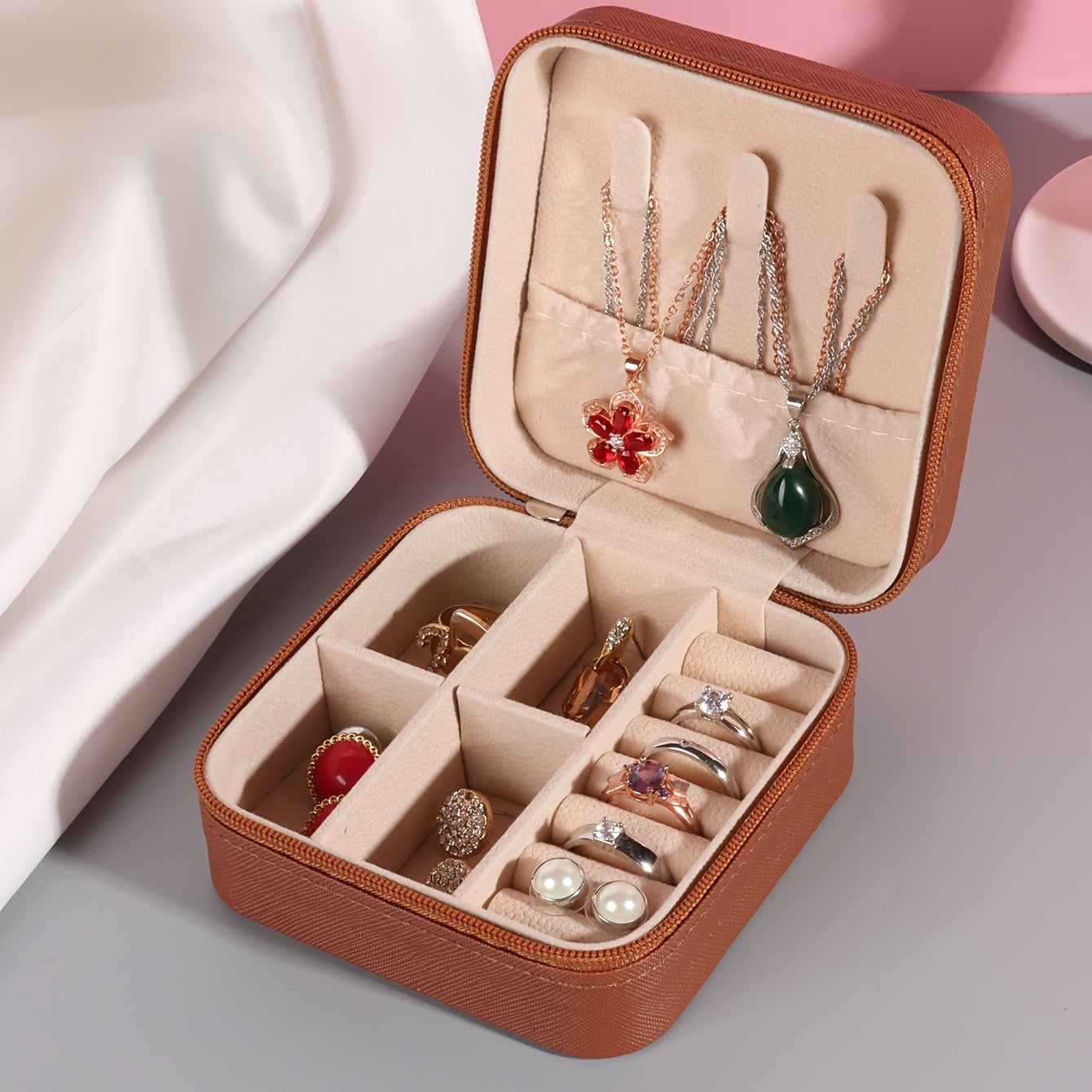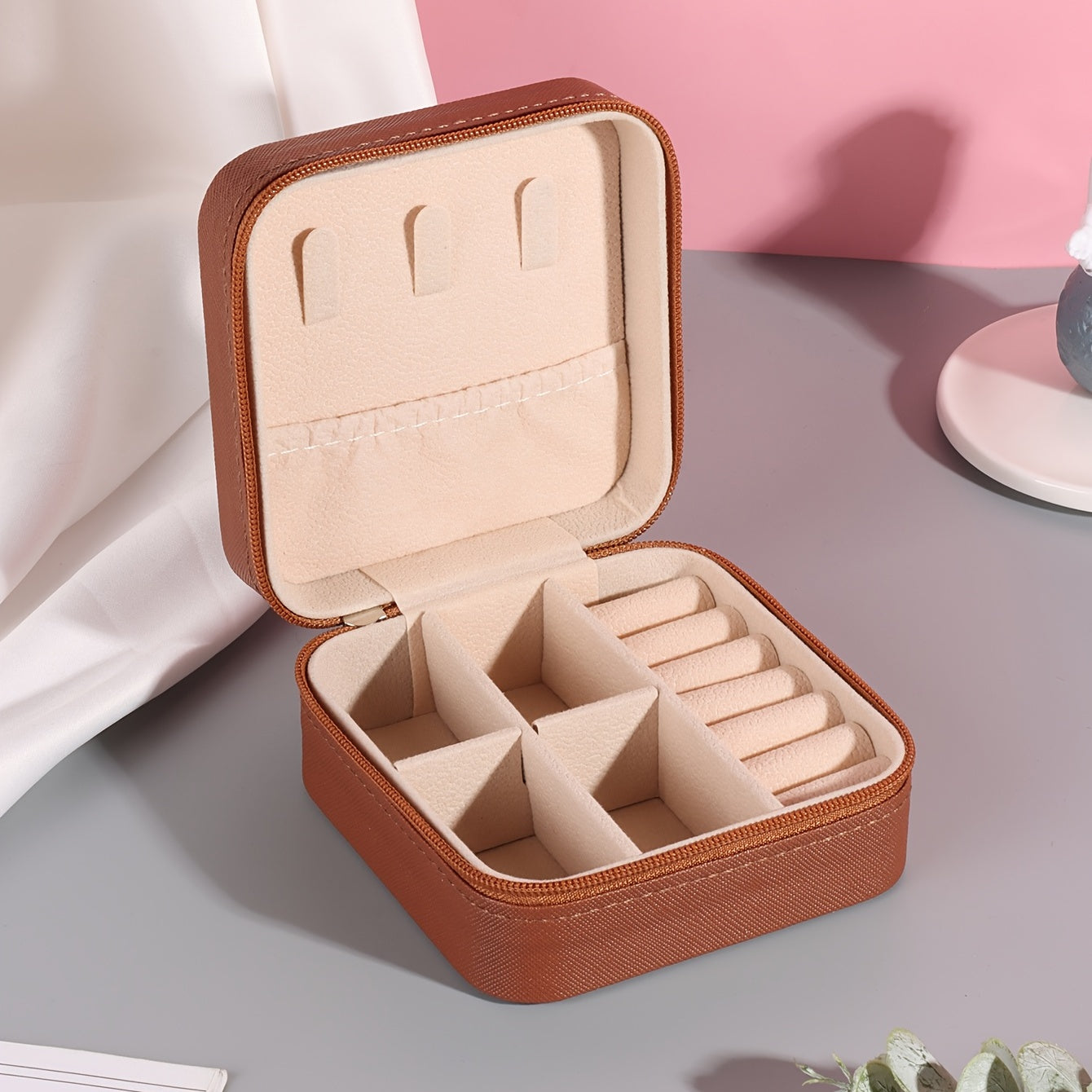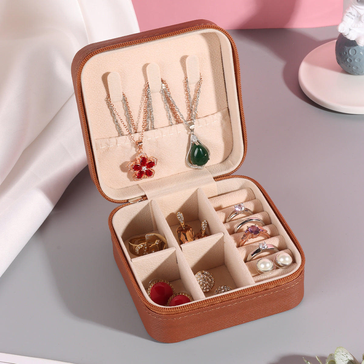 Keep your jewelry organized and secure with this compact, stylish jewelry box. It's perfect for storing earrings, rings, necklaces, and more. The PU leather material adds a touch of elegance to your accessories.
