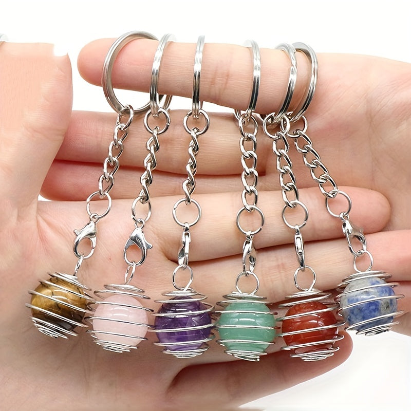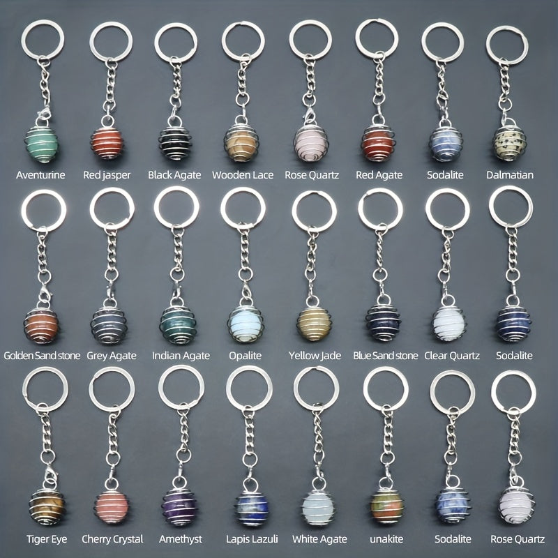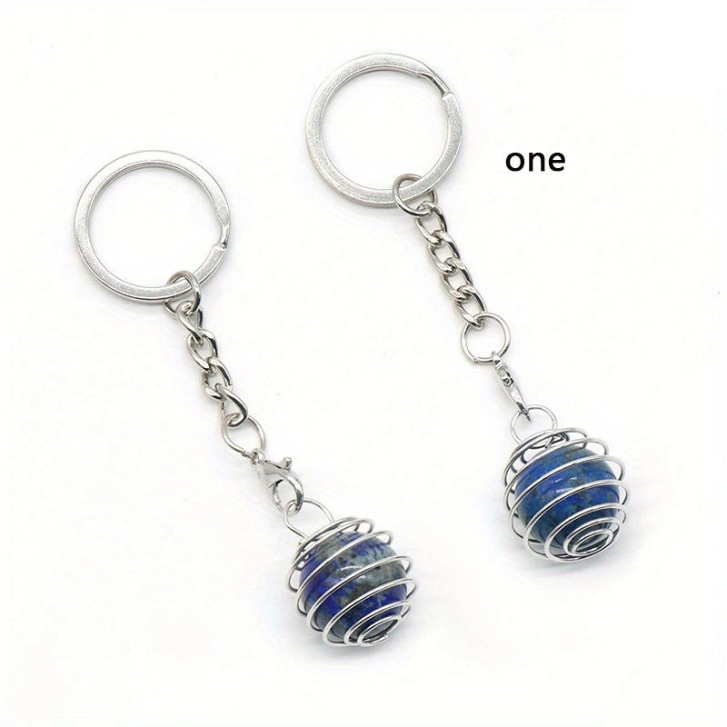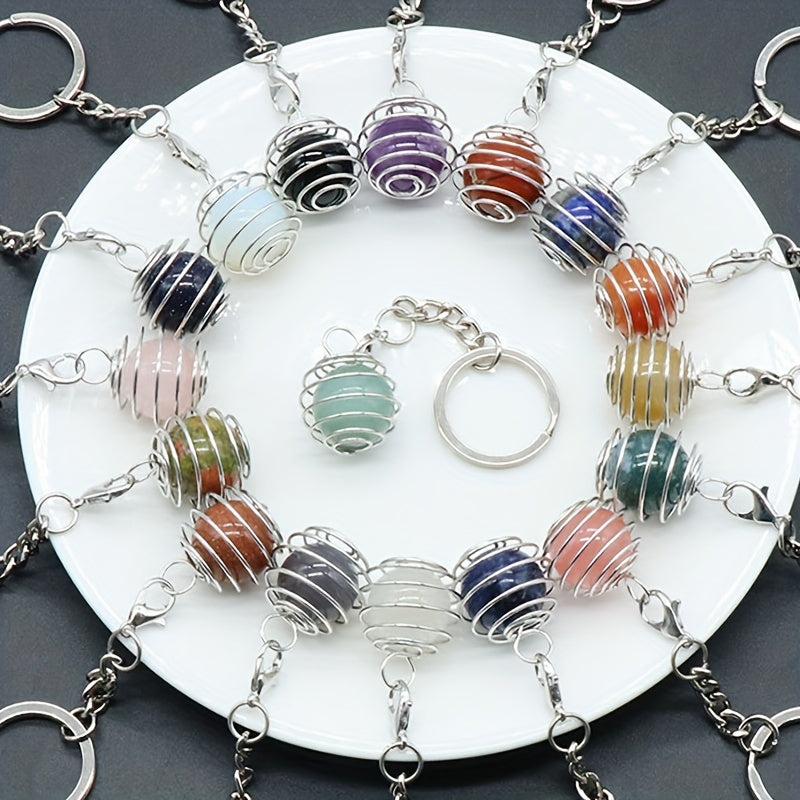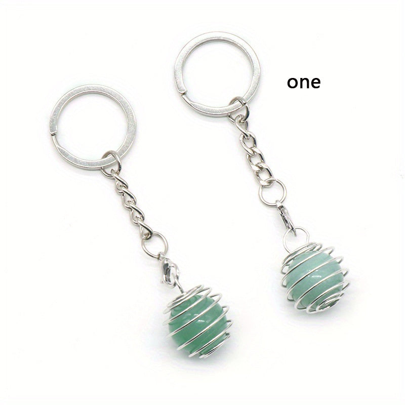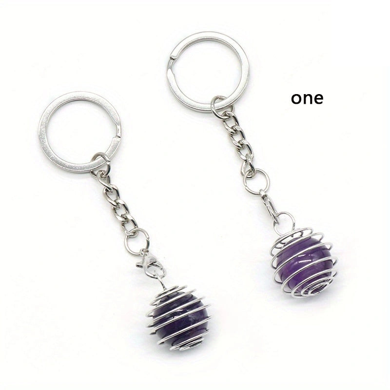 Add a touch of elegance to your accessories with this mini spring crystal ball round pendant keychain featuring a natural crystal agate ball in a charming purple hue. Perfect for DIY jewelry projects or as a unique bag accessory.