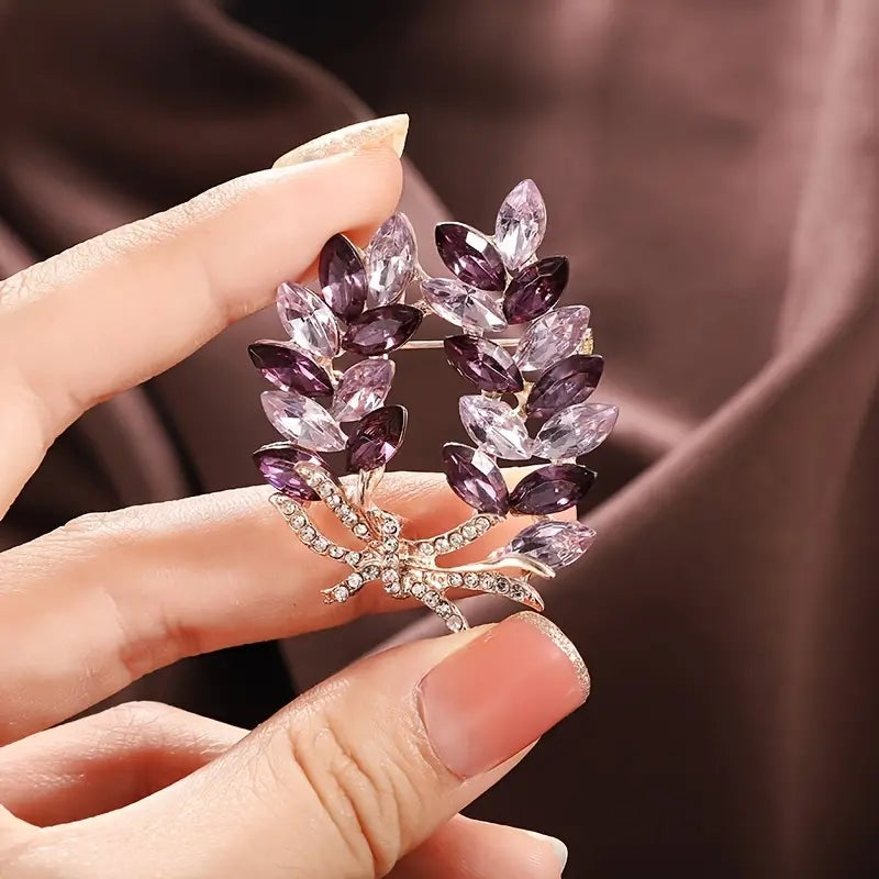 Elegant and charming purple crystal brooch pin, perfect for weddings and special occasions. This small accessory makes a wonderful gift.