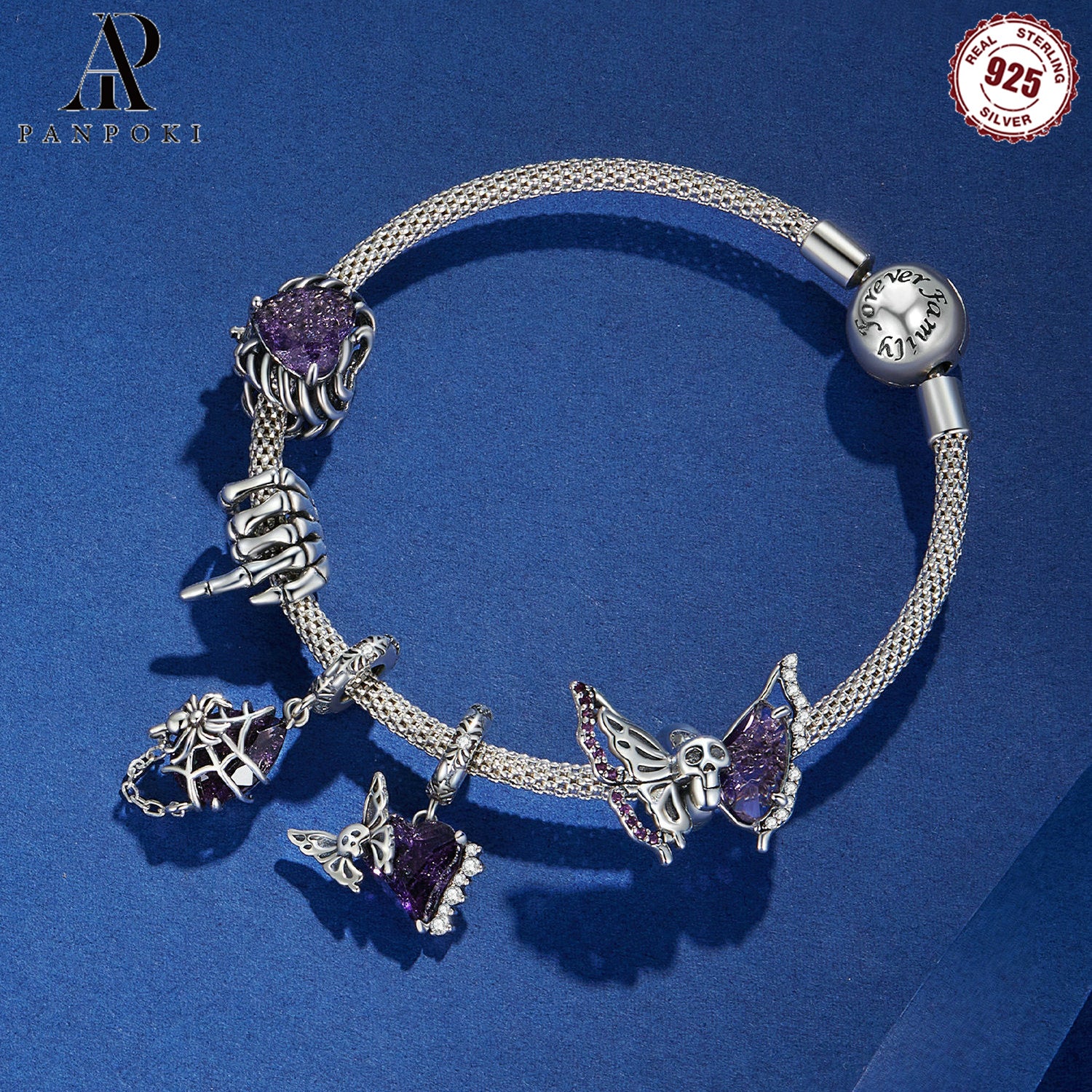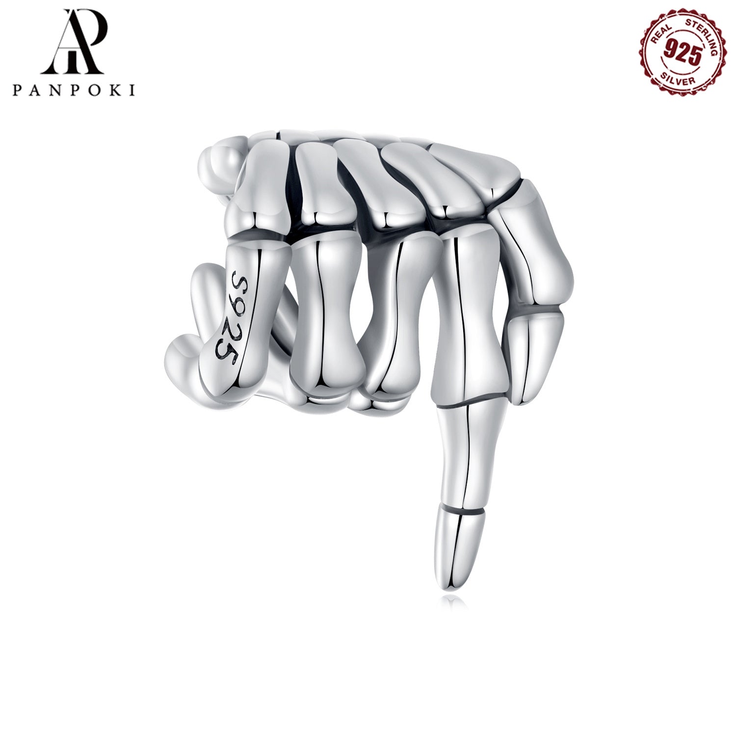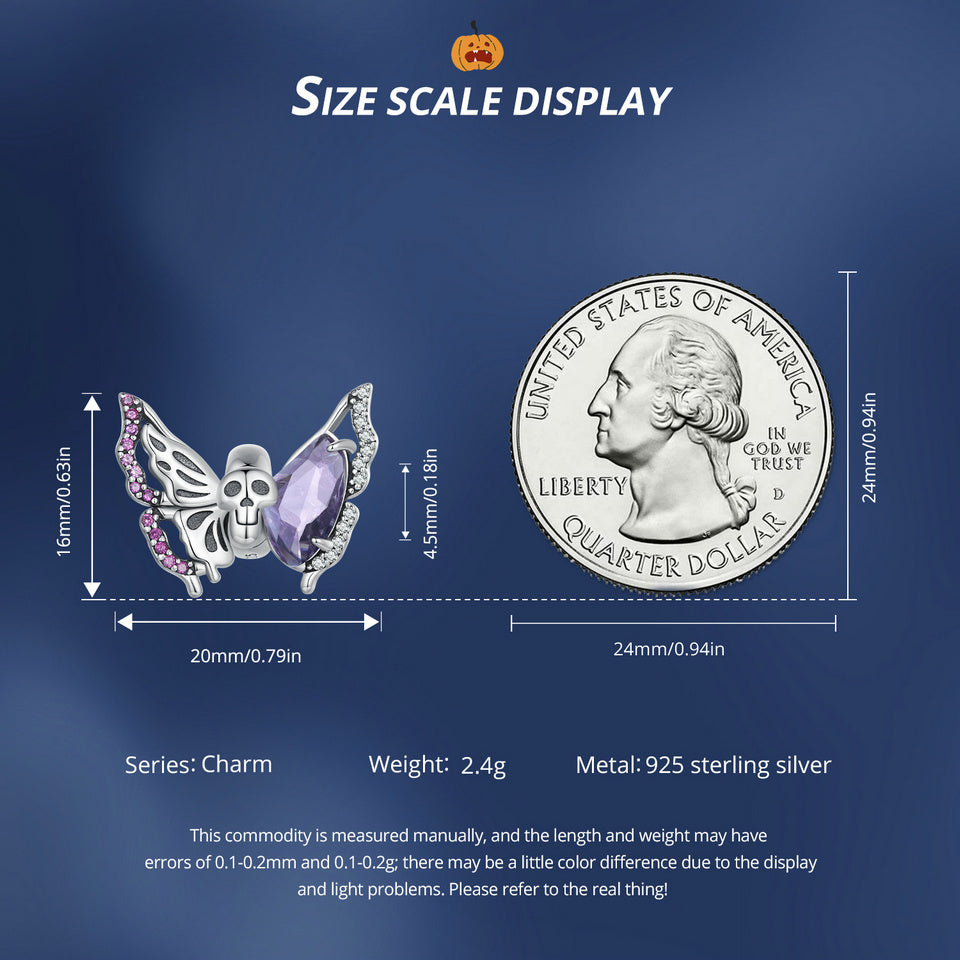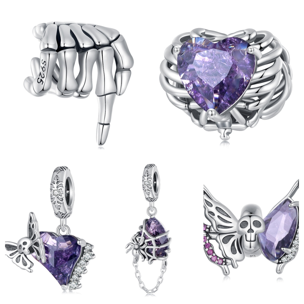Add a spooky touch to your jewelry with this purple rhinestone skeleton hand bead. Made of 925 sterling silver, perfect for DIY bracelets and necklaces.