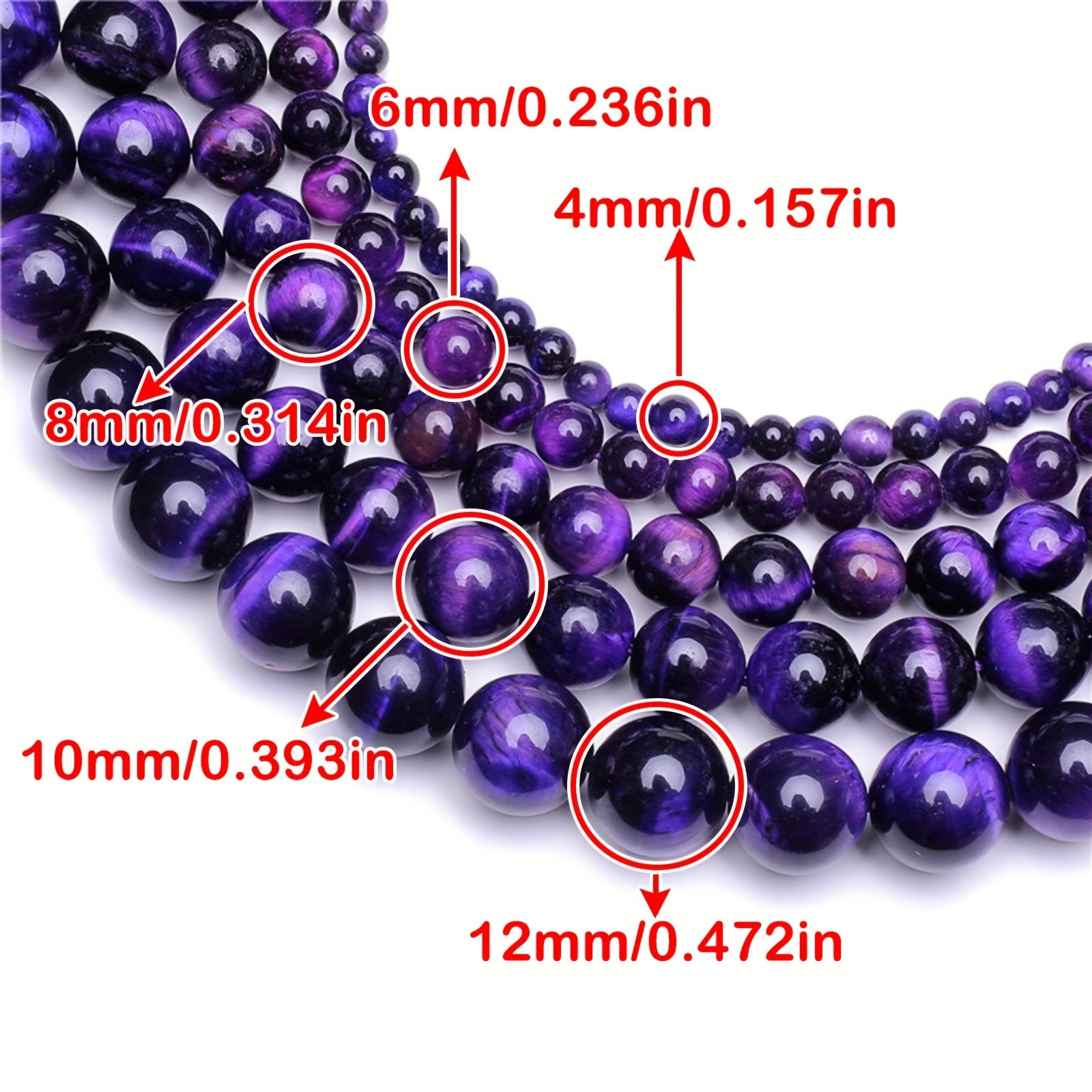 Create stunning jewelry pieces with these purple tiger eye stone beads. Perfect for bracelets, necklaces, and DIY projects. Each bead measures between 6-10mm.