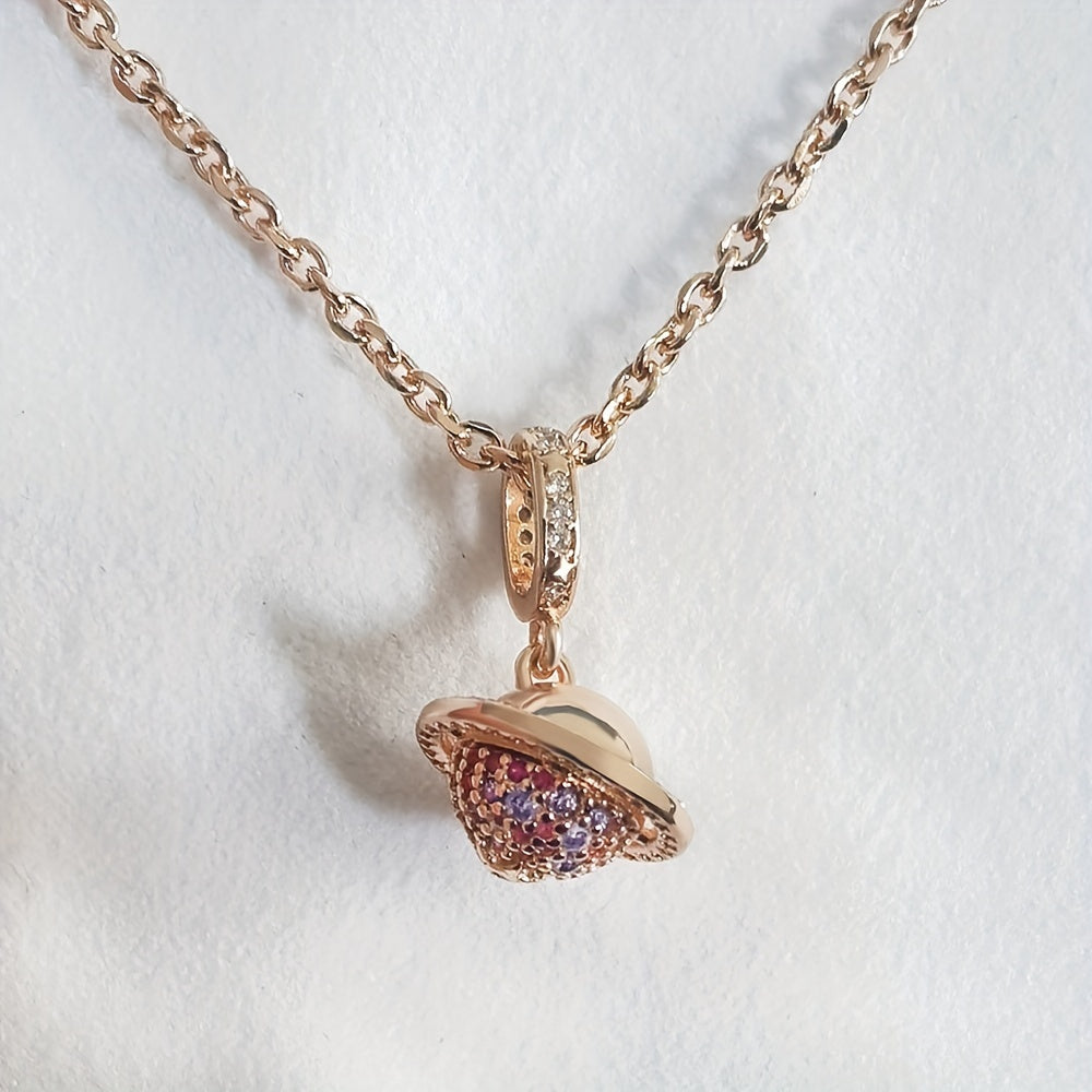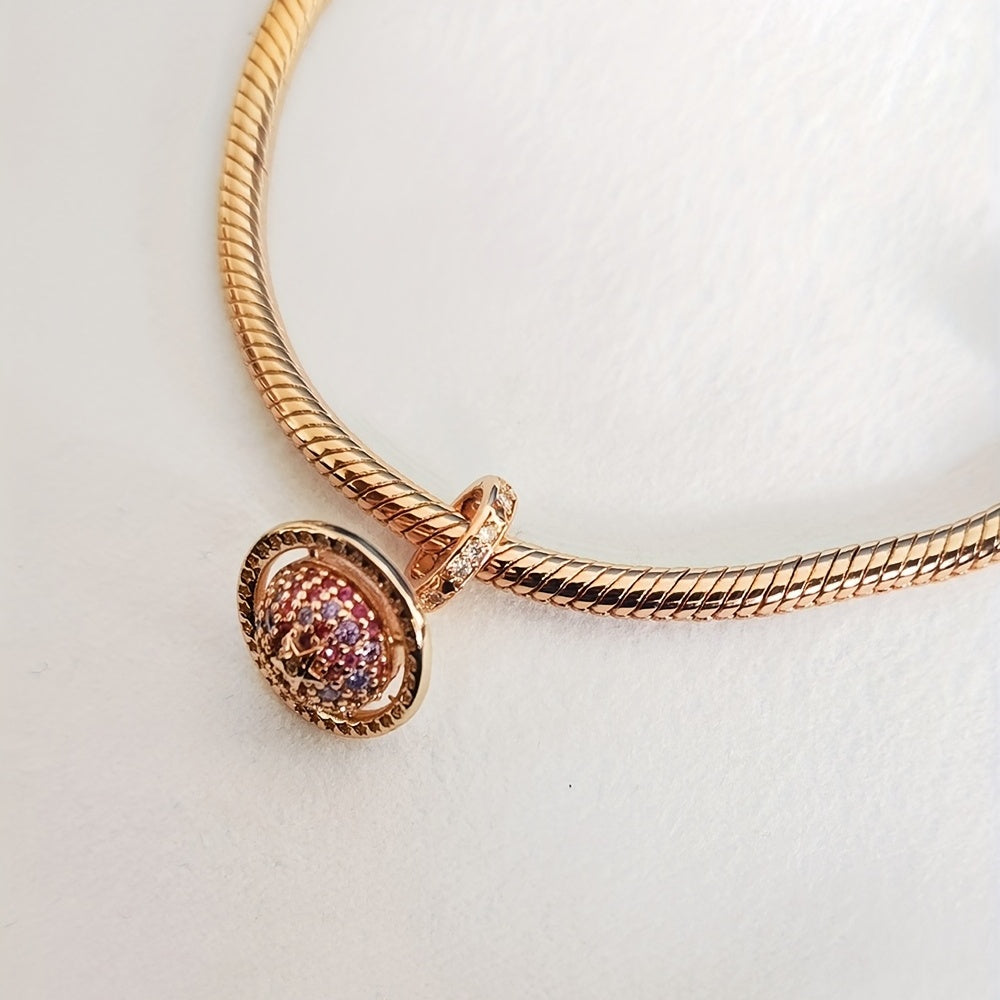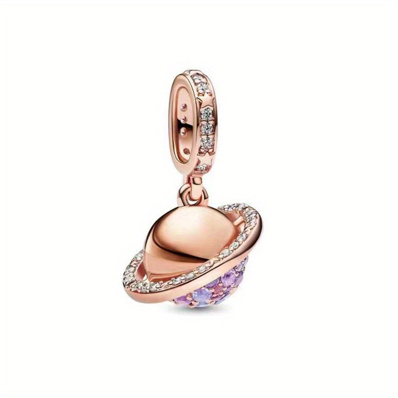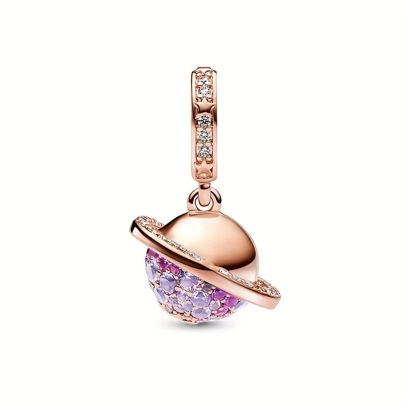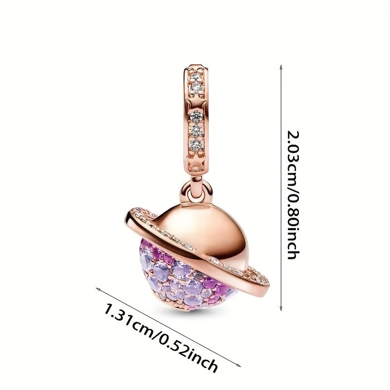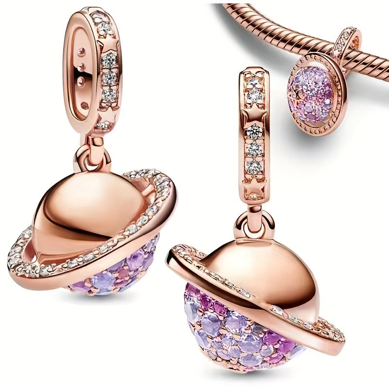 Elegant purple zircon rose golden planet pendant bead that fits 3-4mm snake pattern bracelet and various necklaces.