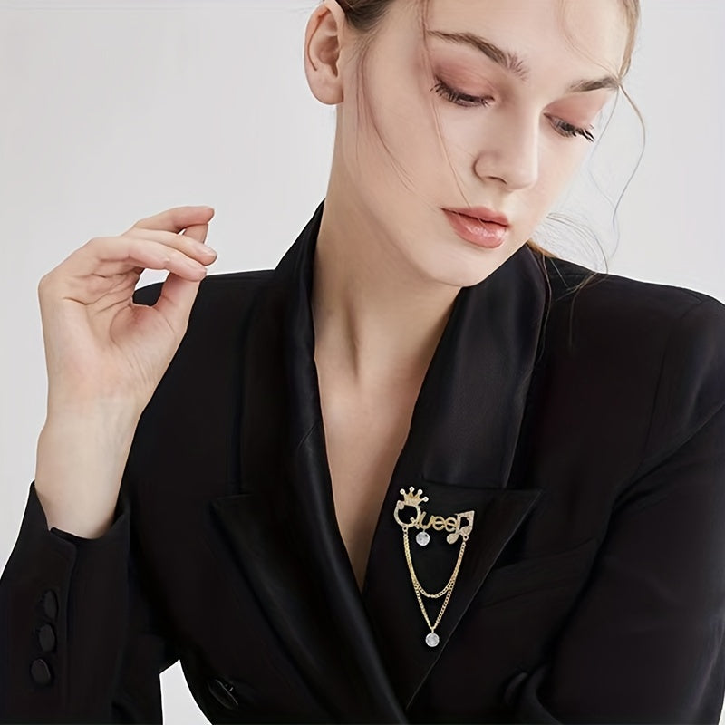 Add a touch of elegance to your outfit with this exquisite Queen Brooch Pin featuring rhinestones. Perfect for weddings, parties, or as a gift for a special woman.