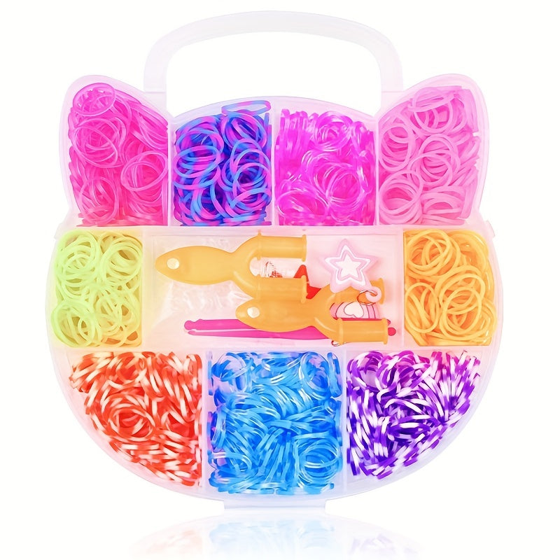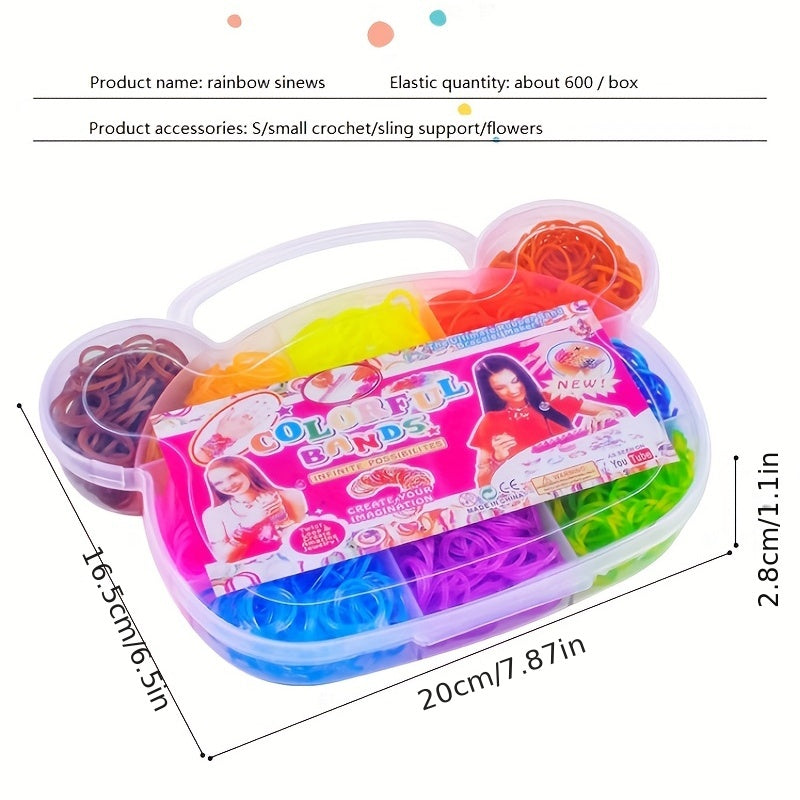 Create colorful and fun bracelets with this set of rainbow rubber bands. Perfect for DIY projects and braided bracelet making.