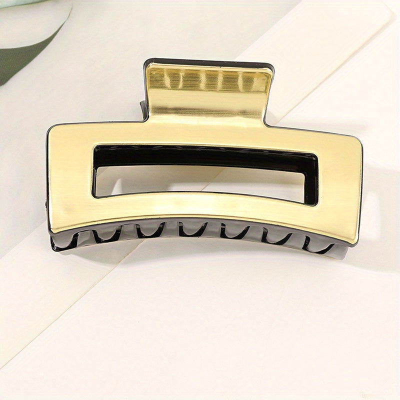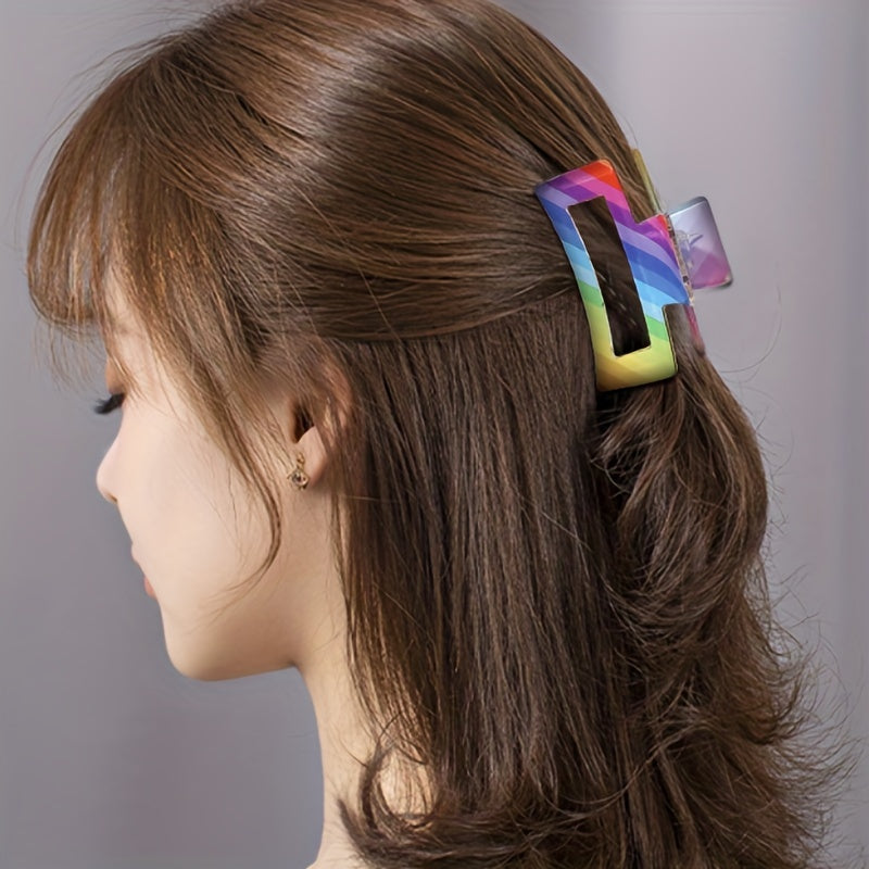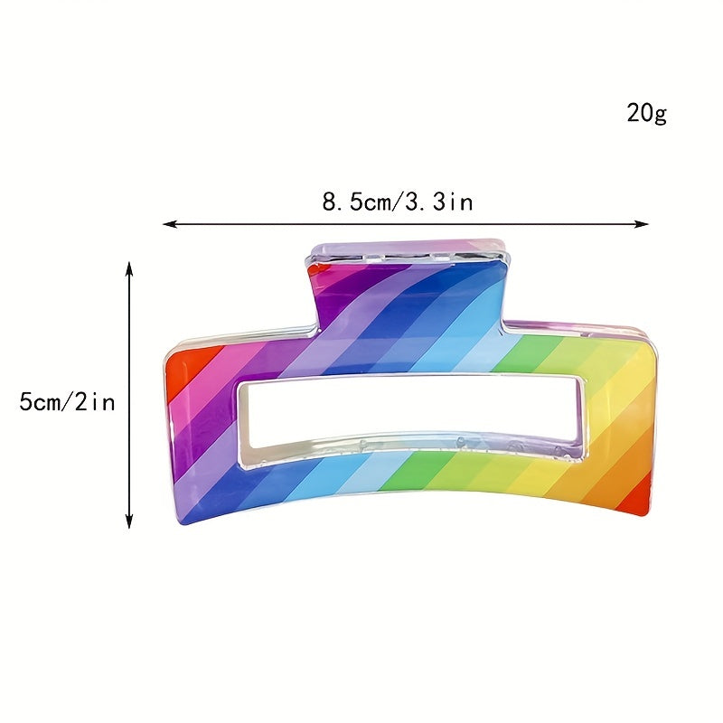 Add a pop of color to your hair with this stylish rainbow striped pattern hair claw. Perfect for holding your hair in place with a minimalist design.