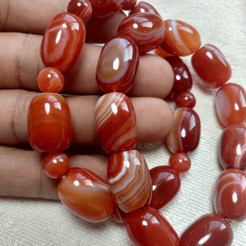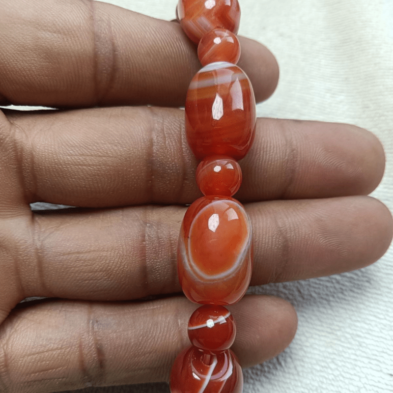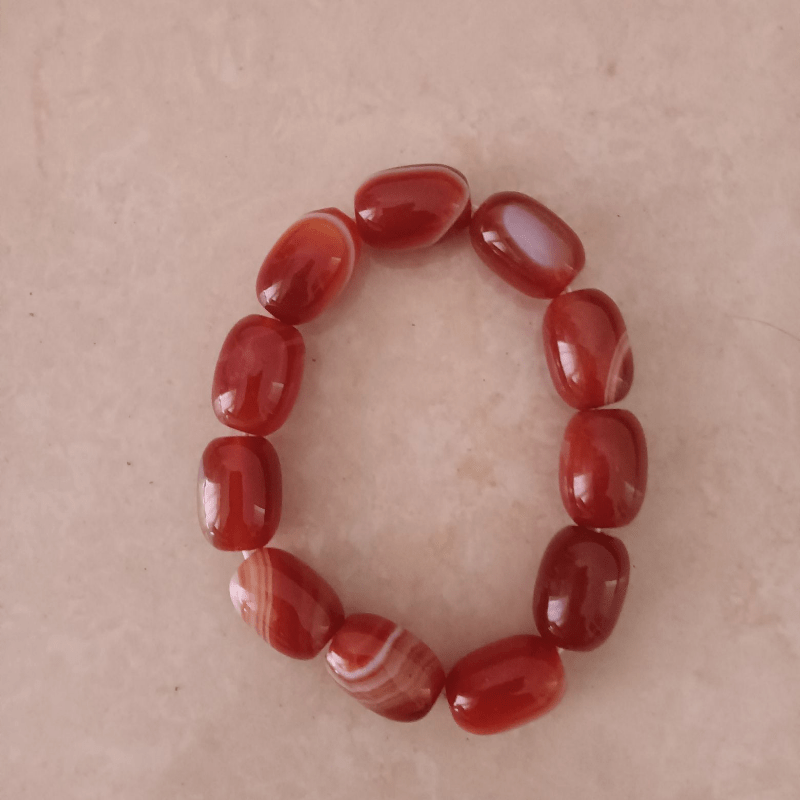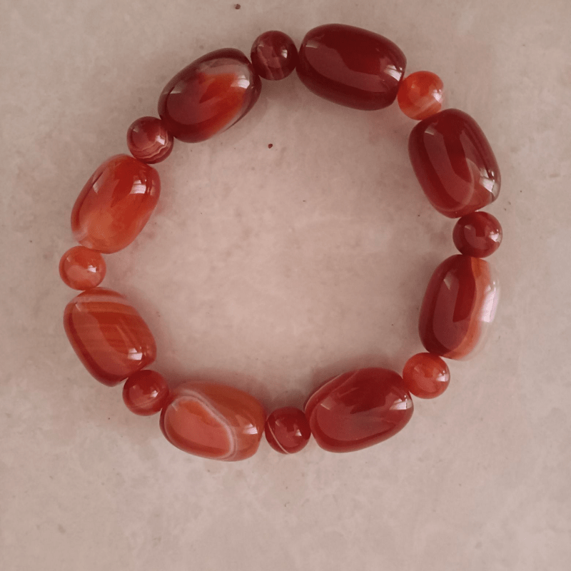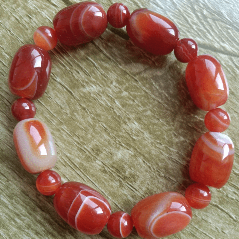 Elegant silk bracelet featuring barrel beads made of red agate with a touch of national style. Suitable for both men and women.