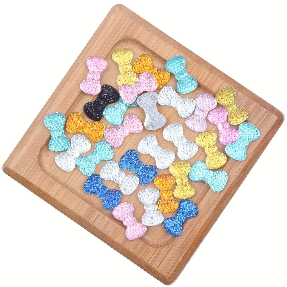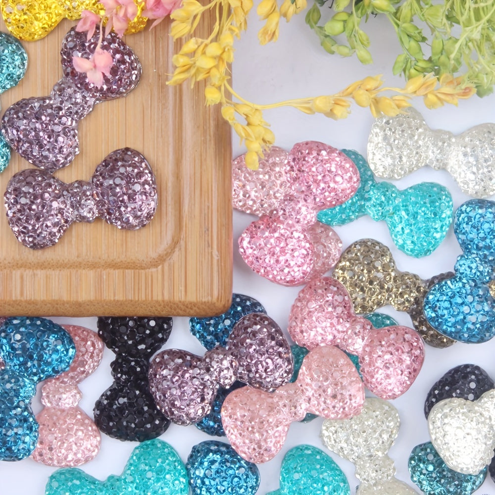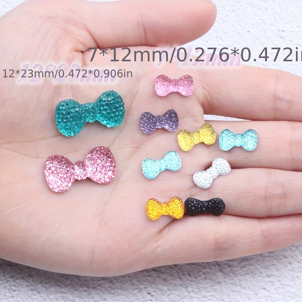 Add a touch of glamour to your phone case, nails, or hairpin with these resin glitter bow-shaped stickers. Perfect for DIY hair accessories and nail art.