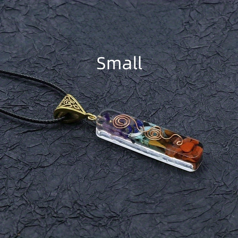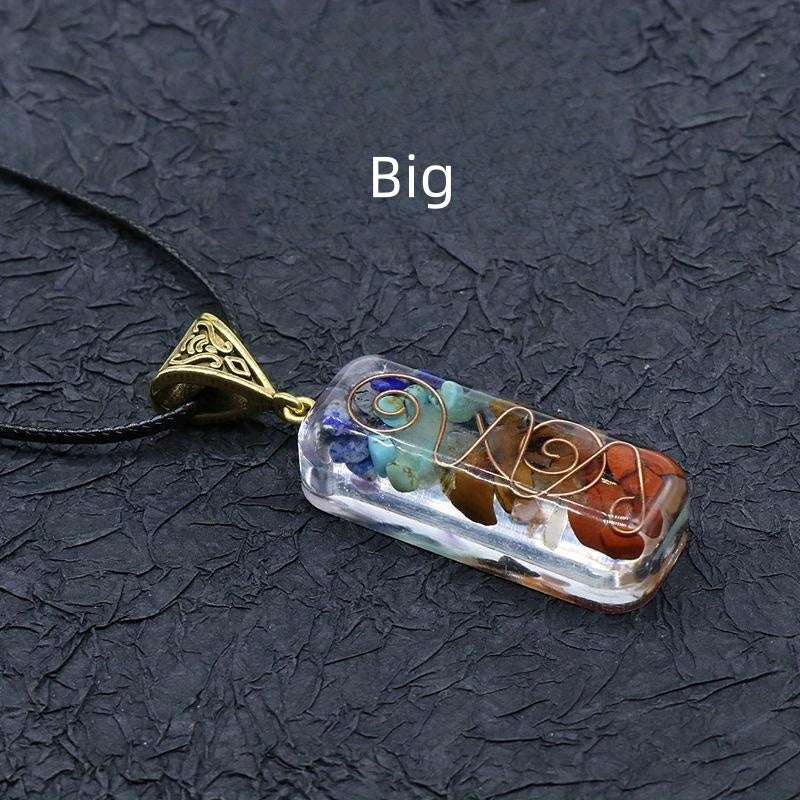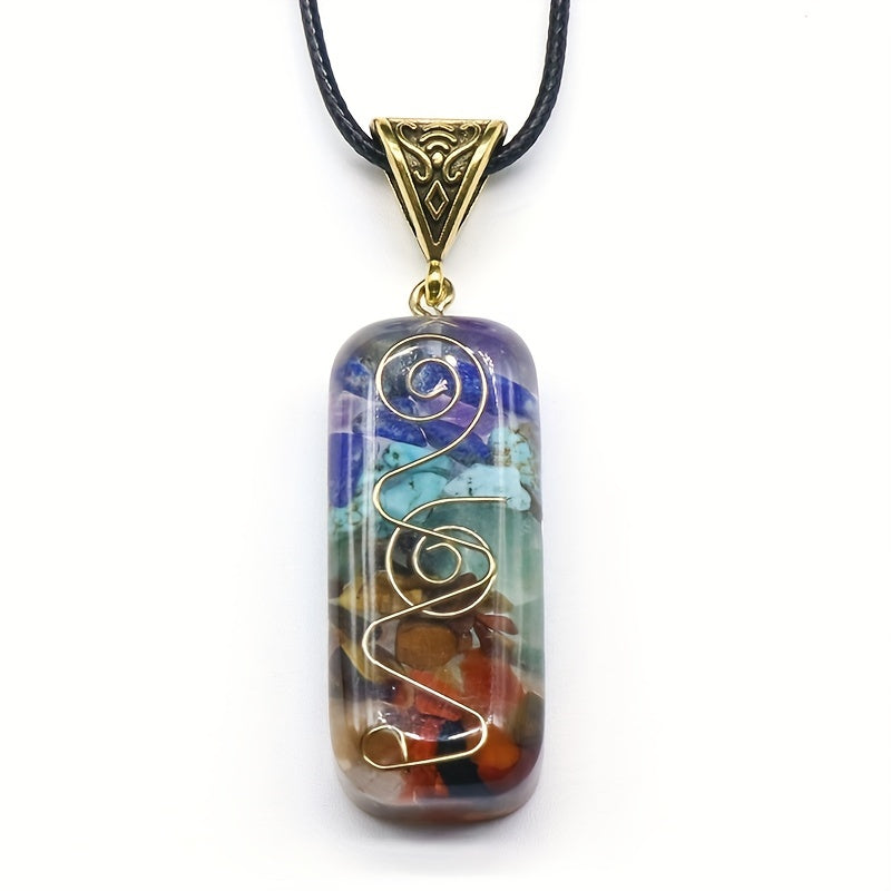 Unique resin-glue wrapped natural stone pendant suitable for both men and women. The pendant features colored stones and a stylish design that adds a touch of elegance to any outfit.