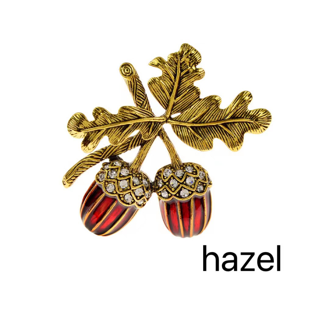 Add a touch of vintage charm to your outfit with this golden fruit-shaped brooch corsage. Perfect for adding a pop of color and style.