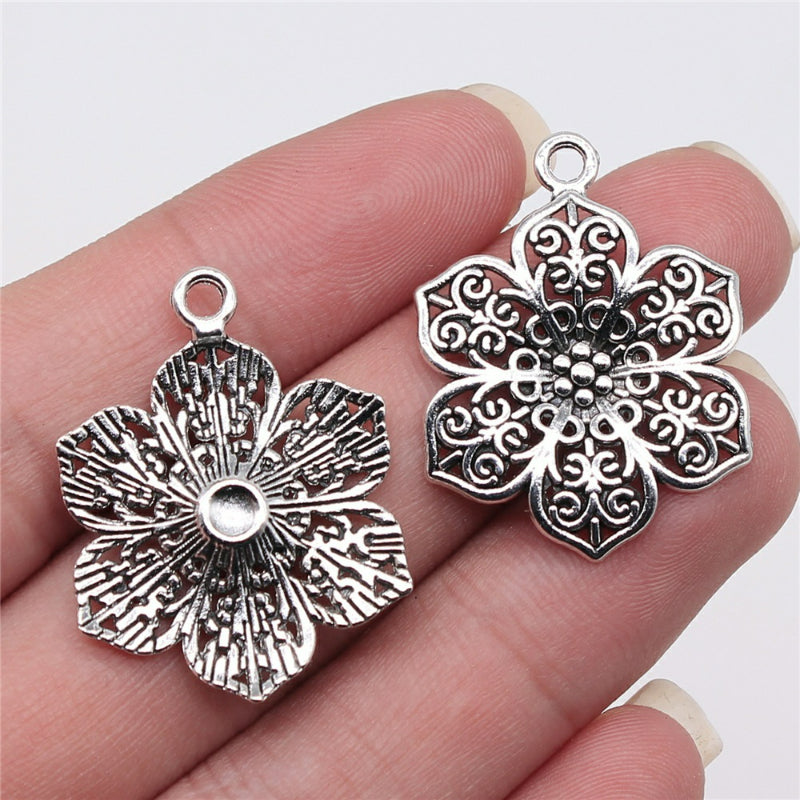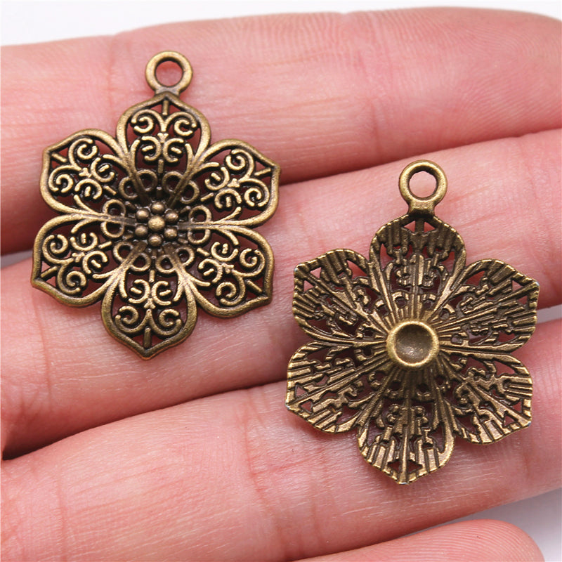 Retro Hollow Out Flower Pendant for Jewelry Making