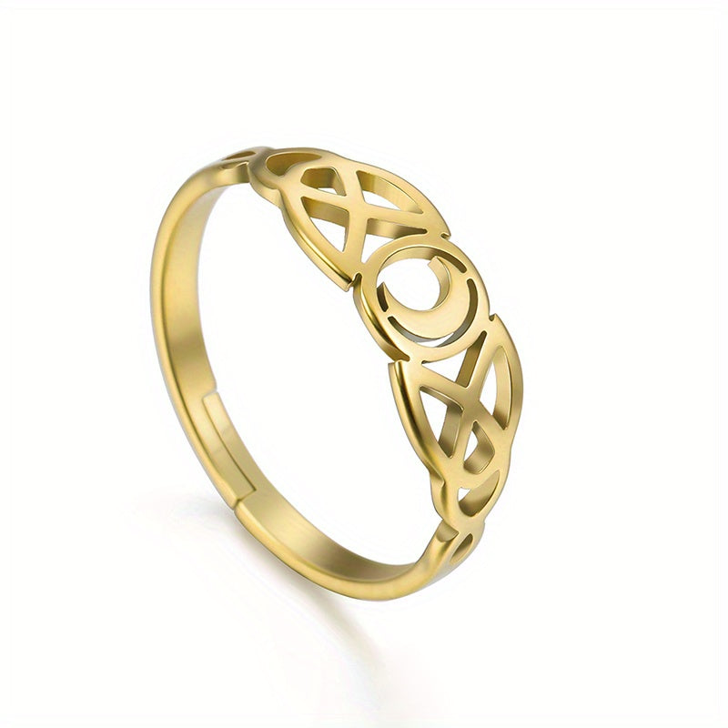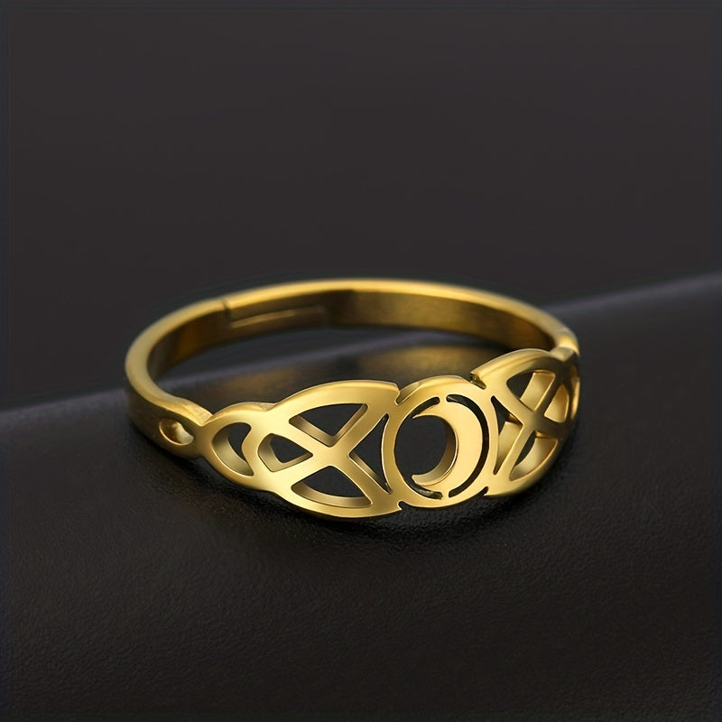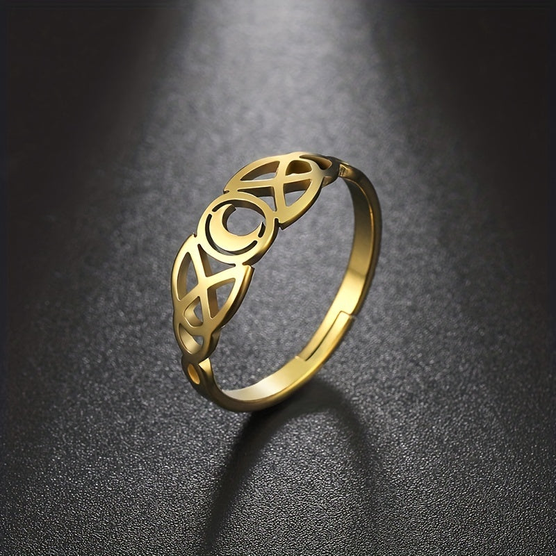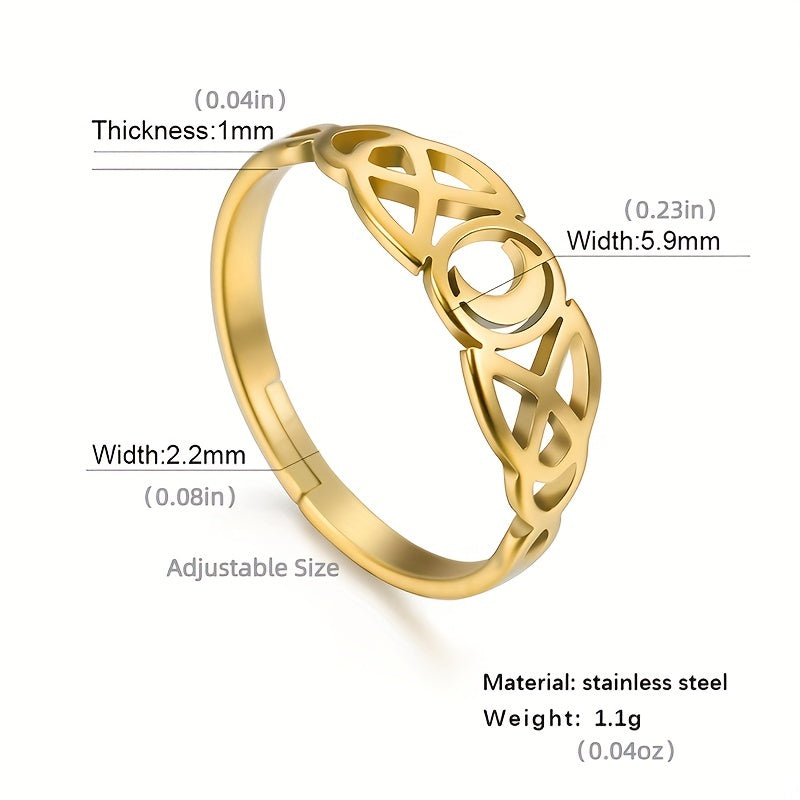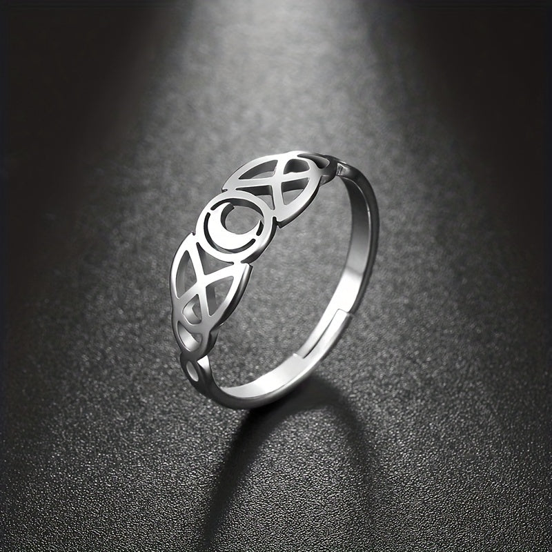 Embrace a touch of ancient charm with this adjustable Viking Celtic knot ring made of stainless steel. The intricate design features a moon motif, making it a unique amulet ring for men.