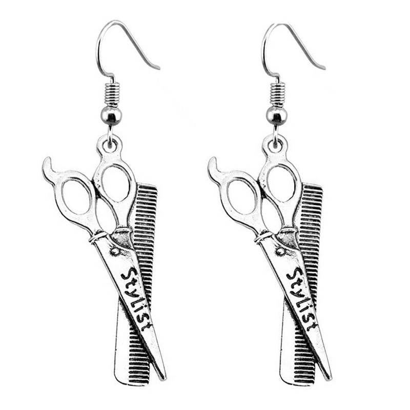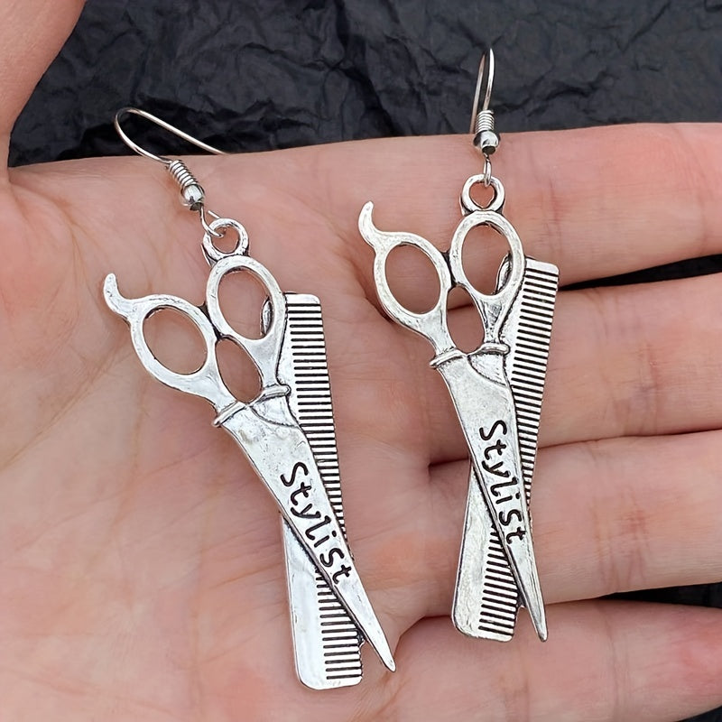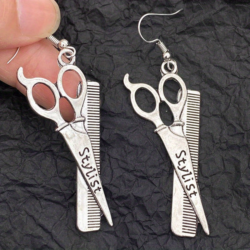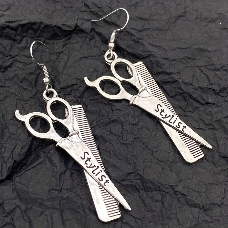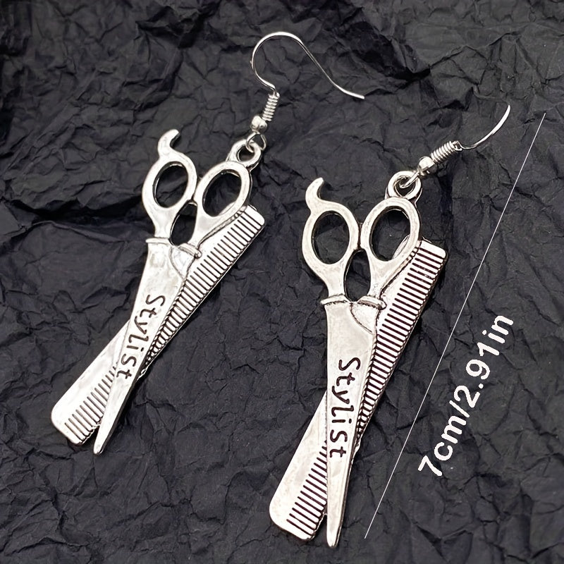 Add a touch of vintage charm to your look with these creative scissors hair dryer comb hairdresser dangle earrings. Made from alloy, these earrings make a unique and stylish gift for any hair enthusiast.