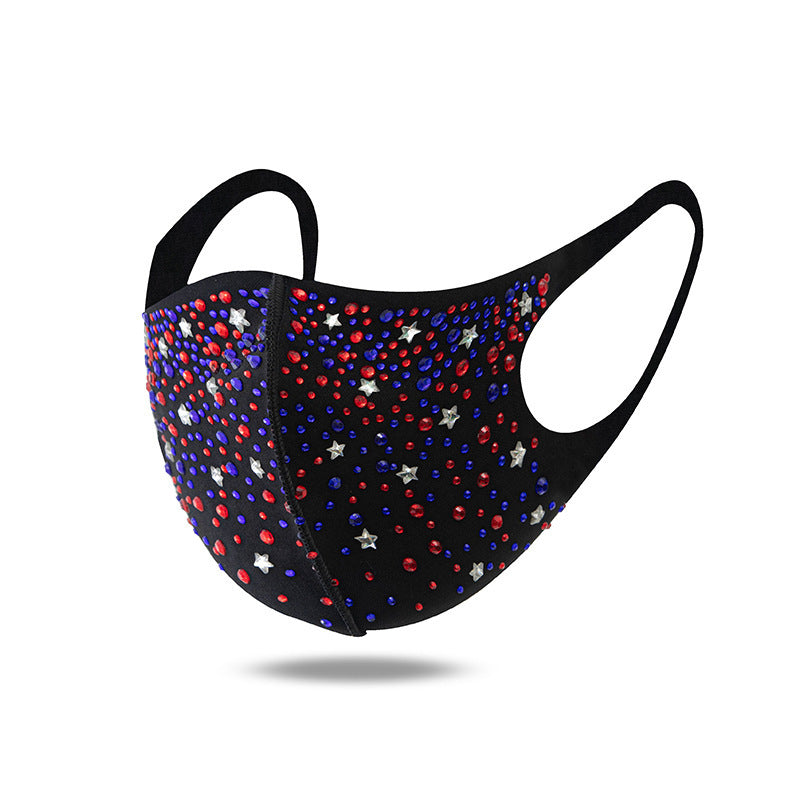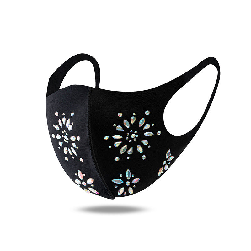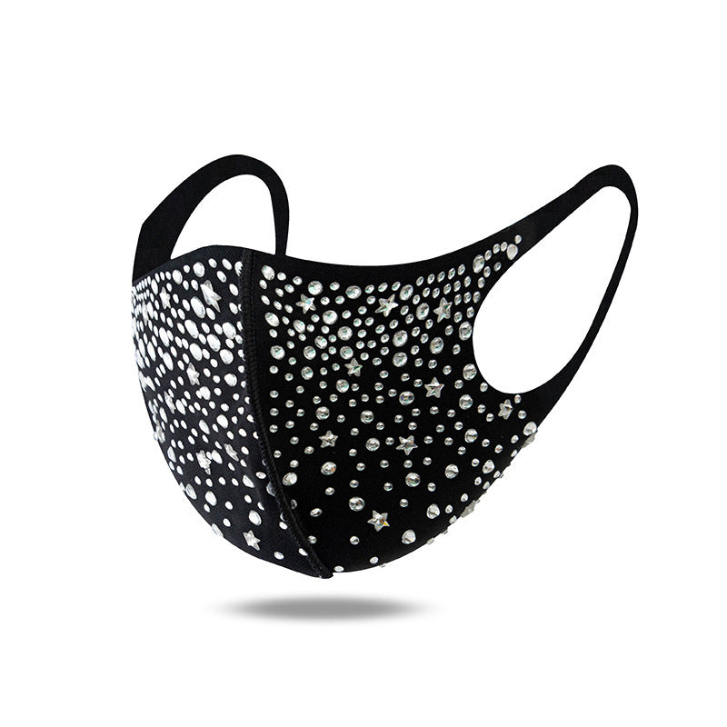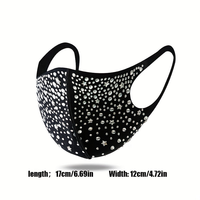 Stay stylish and protected with this rhinestone decorated face mask. It offers dustproof functionality and breathability for comfortable wear outdoors.