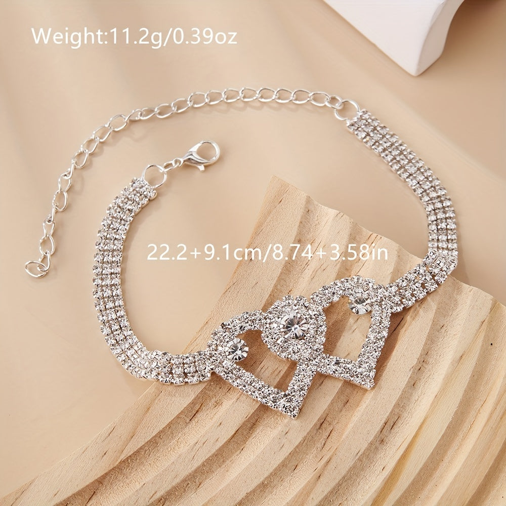 Rhinestone Double Hollow Love Heart Moon Star Anklet
