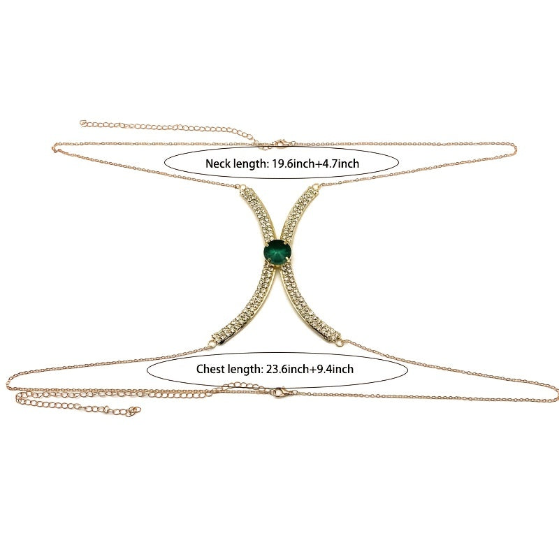This sexy chest chain with inlaid rhinestones is the perfect accessory for your summer beach outfit.