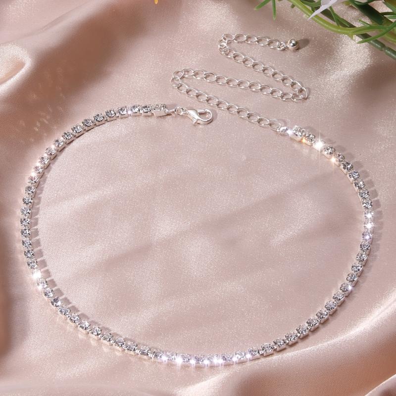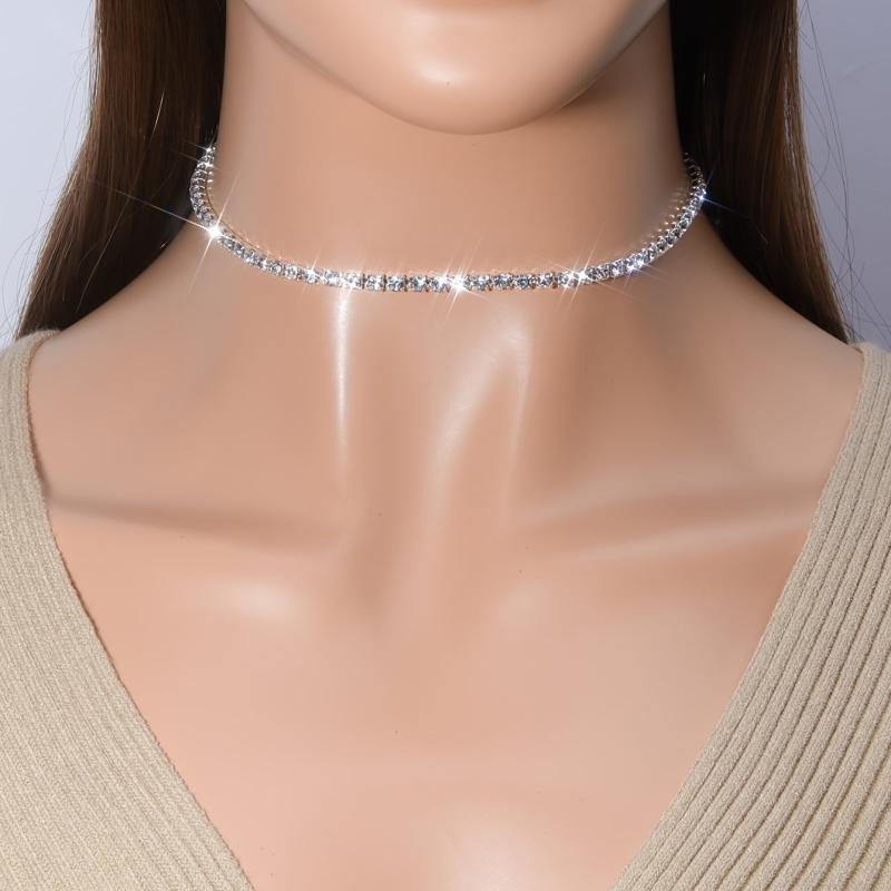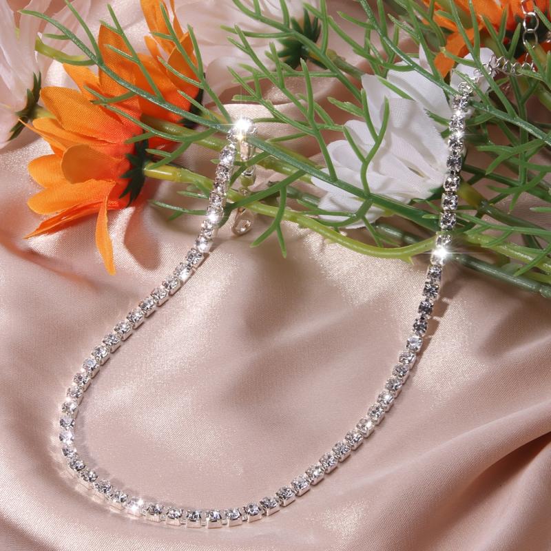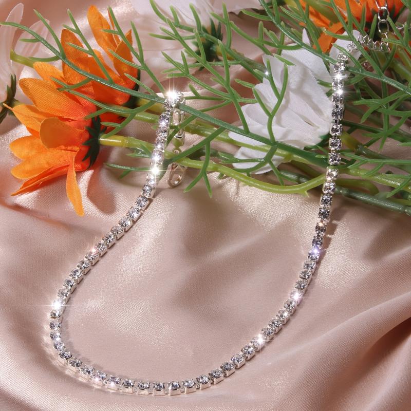 Enhance your elegance with this stunning rhinestone necklace. Perfect for parties, weddings, and banquets, this silver plated jewelry piece is a must-have accessory.