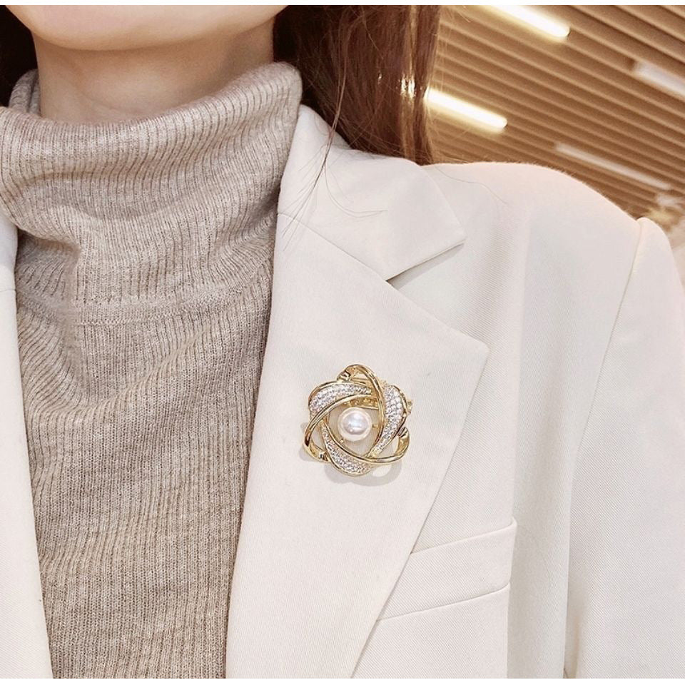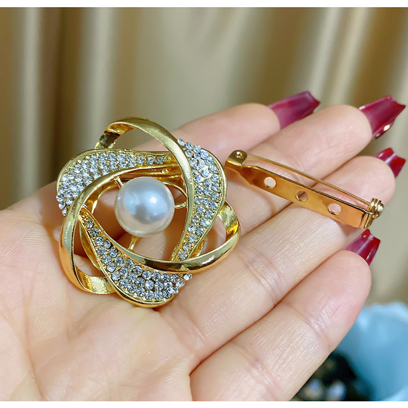 Rhinestone & Pearl Brooch Pin Non Slip Clothing Accessory