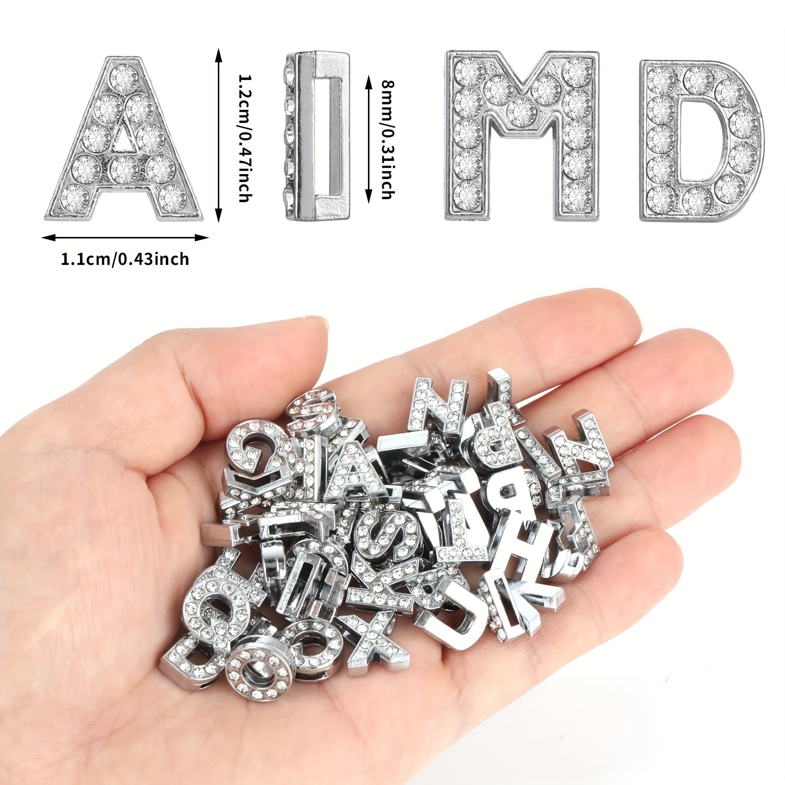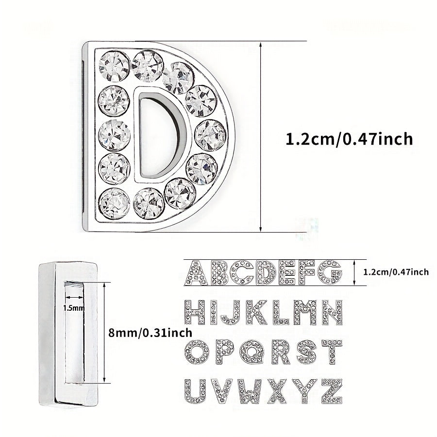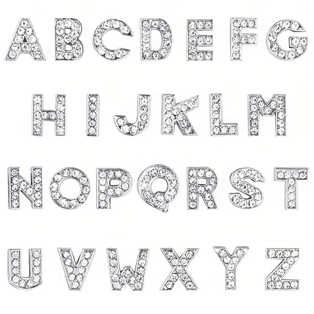 Add sparkle to your wristbands, bracelets, necklaces, shoes, and more with these full rhinestone slide alphabet letters charms. Perfect for customizing and decorating your crafts.