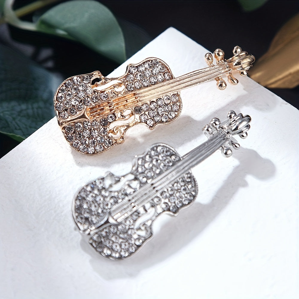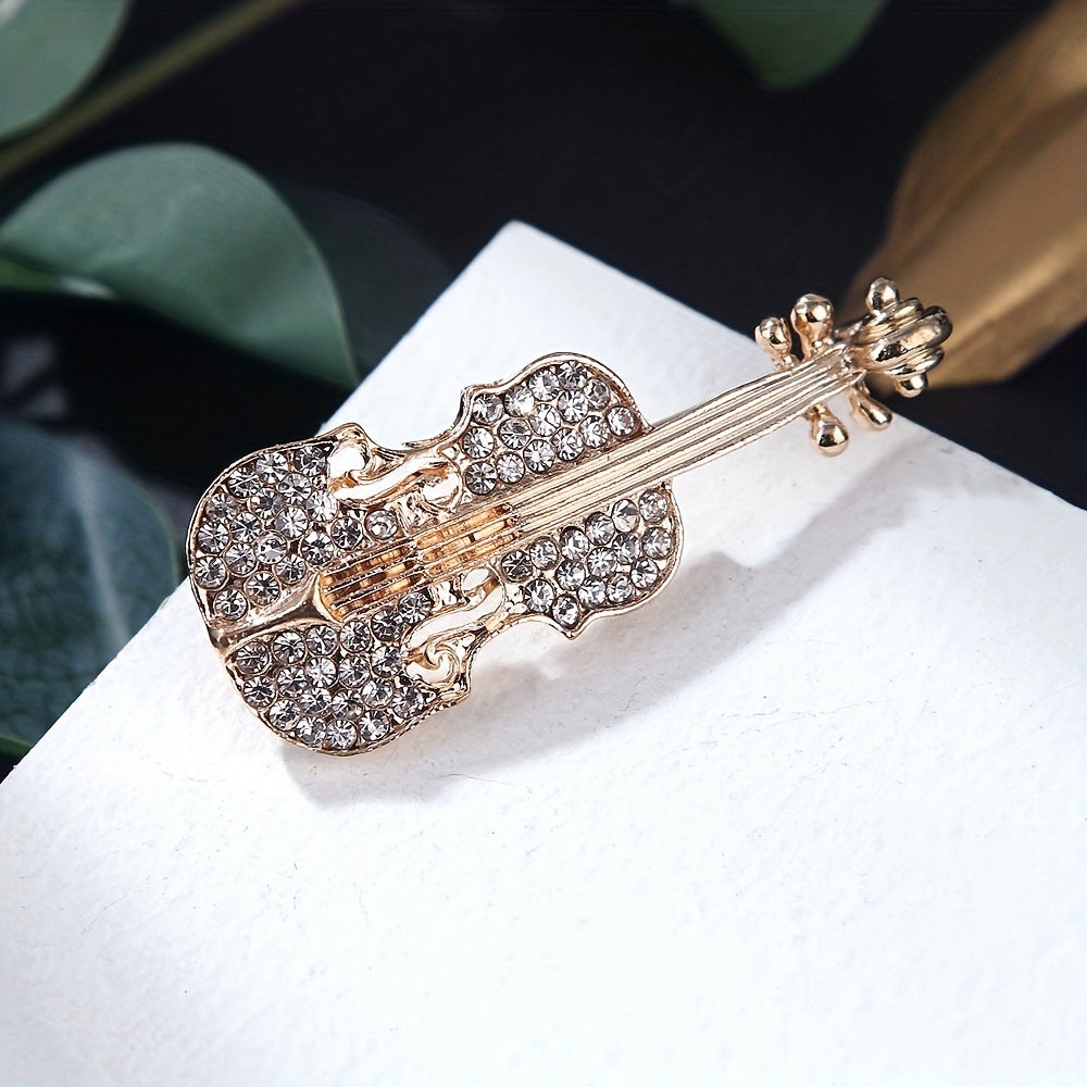 Add a touch of elegance to your outfit with this shimmering Rhinestone Violin Shape Brooch. Perfect for both men and women, this accessory appeals to music lovers and fashion enthusiasts alike.