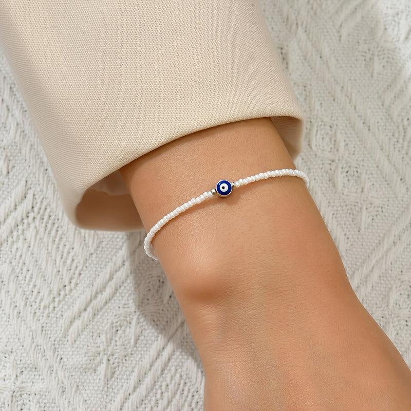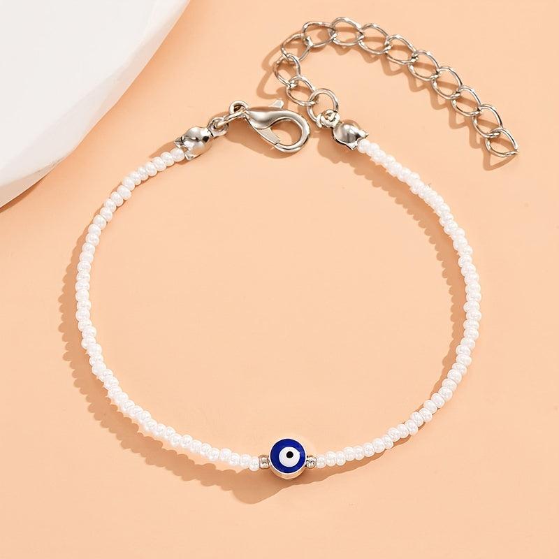 Rice Beads Chain Bracelet Devil's Eye Pattern Good Luck Bracelet