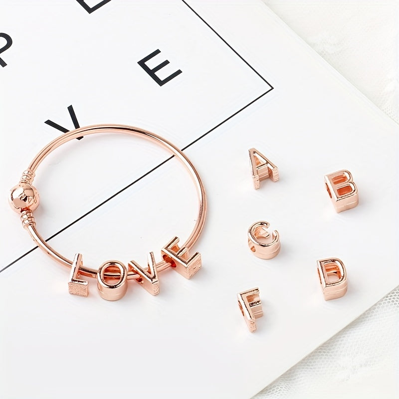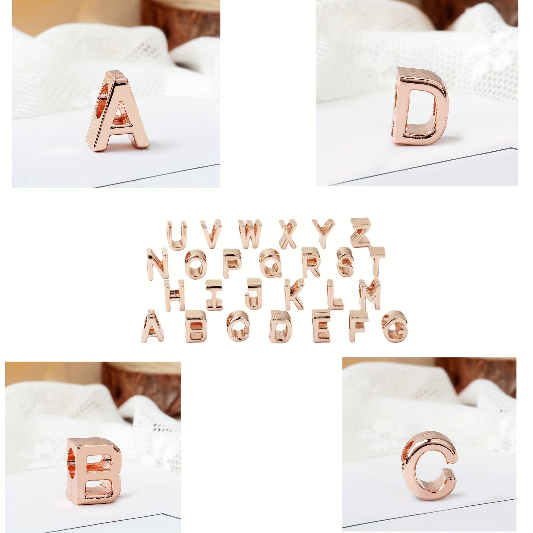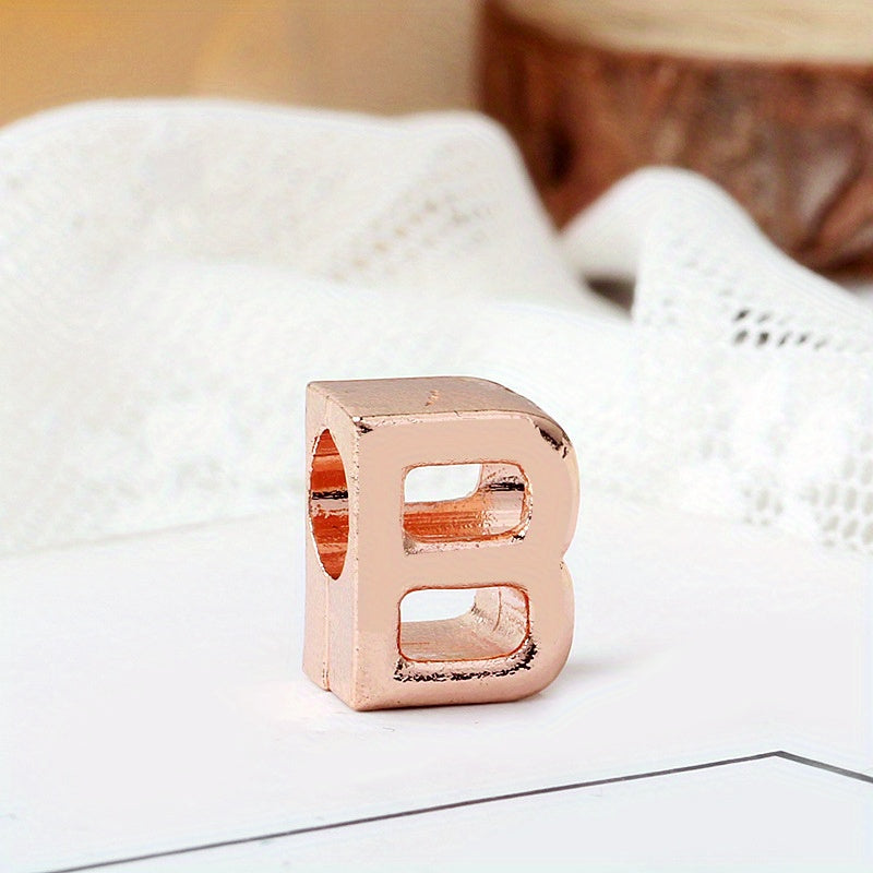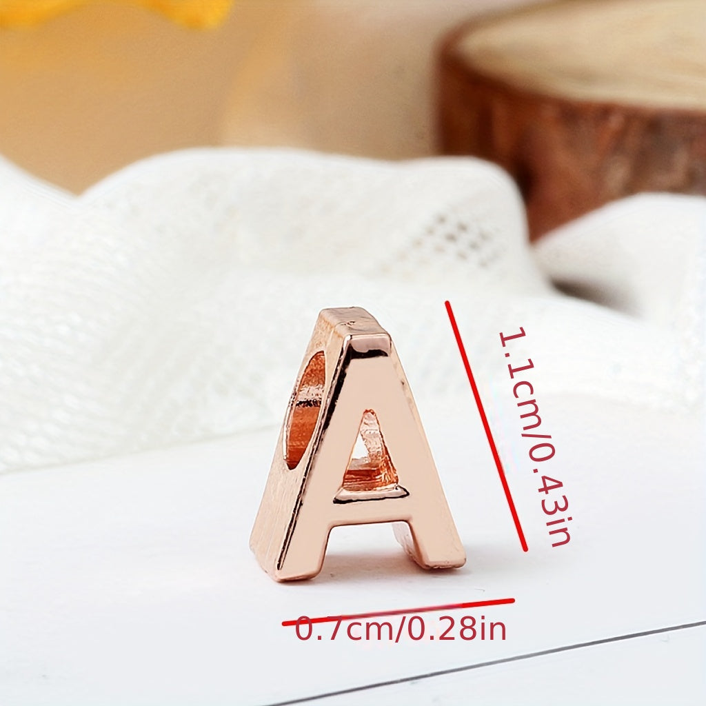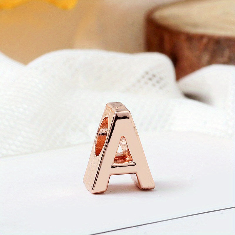 Beautiful rose golden A alphabet large hole beads perfect for creating personalized jewelry pieces.