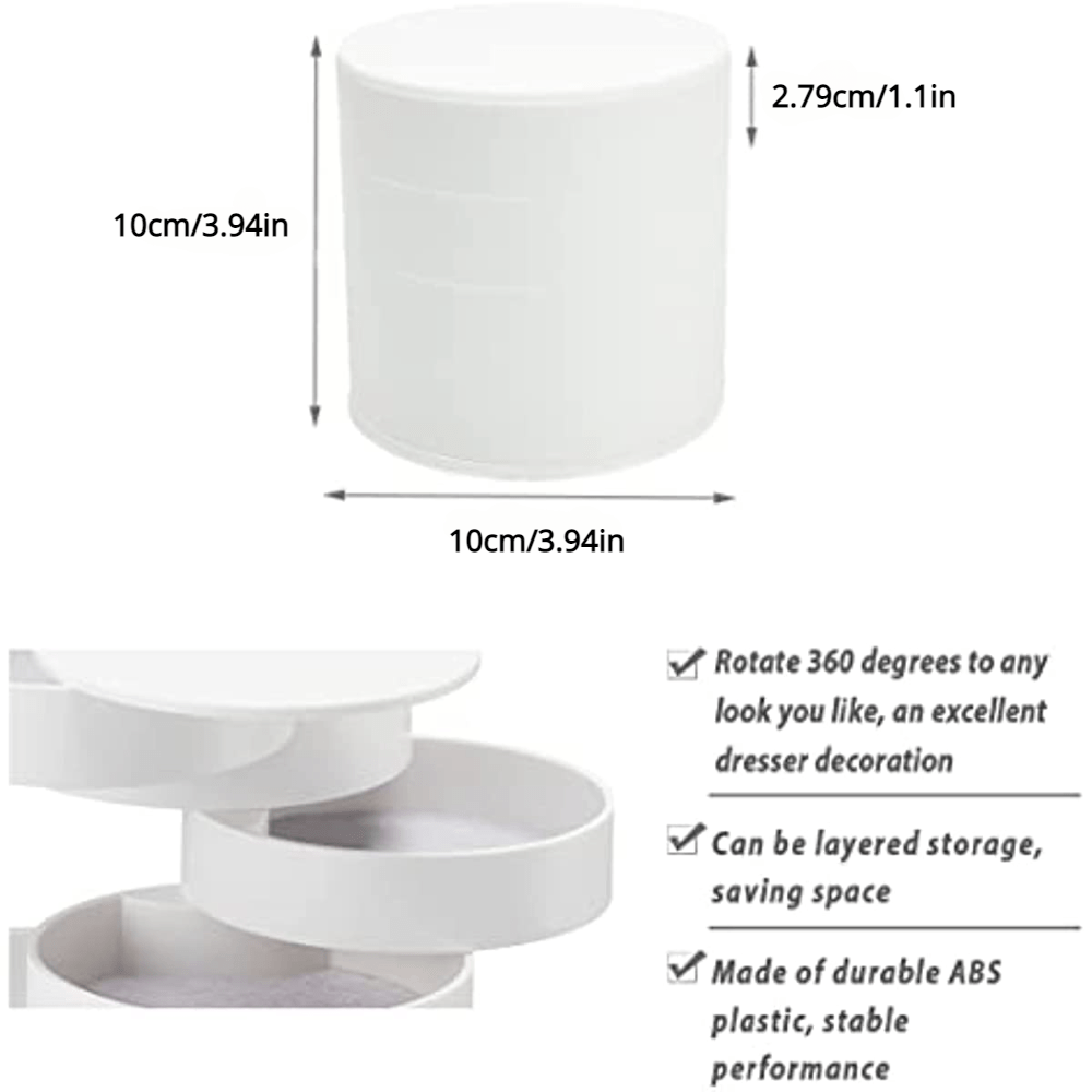 Organize and store your jewelry collection with this multifunctional rotating box. It can hold hair hoops, earrings, studs, necklaces, and bracelets.