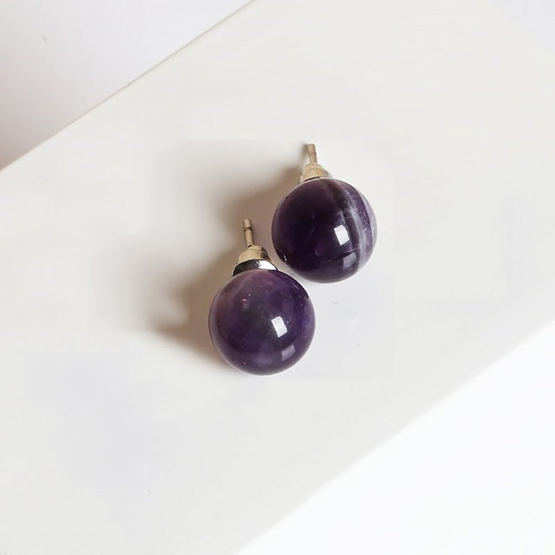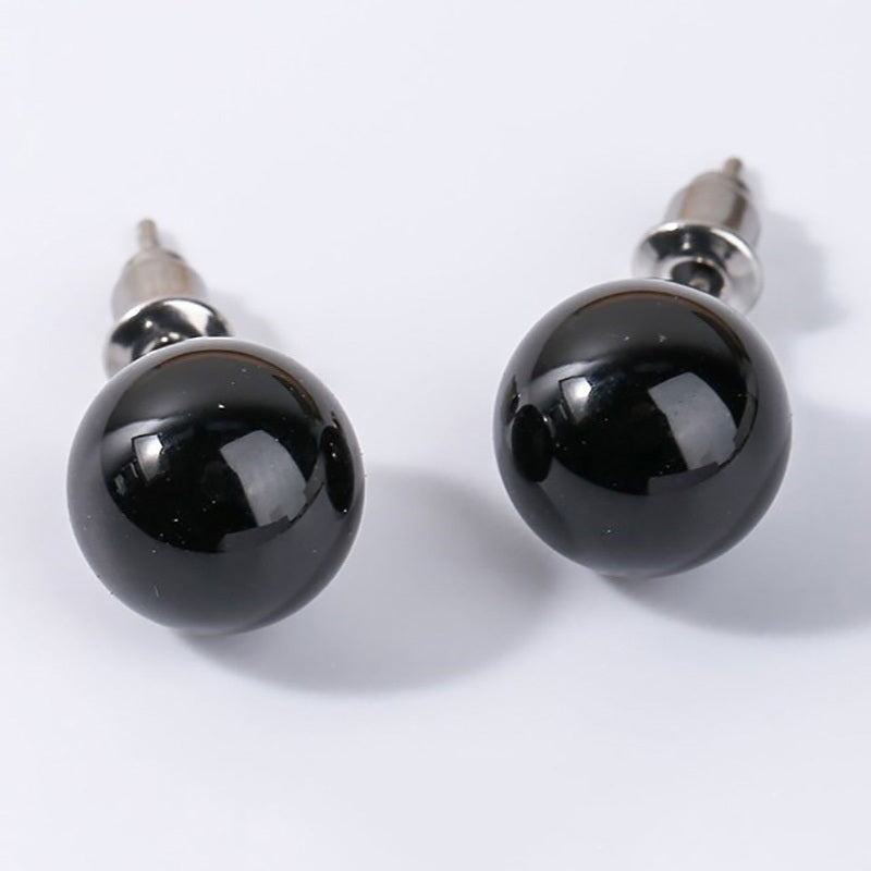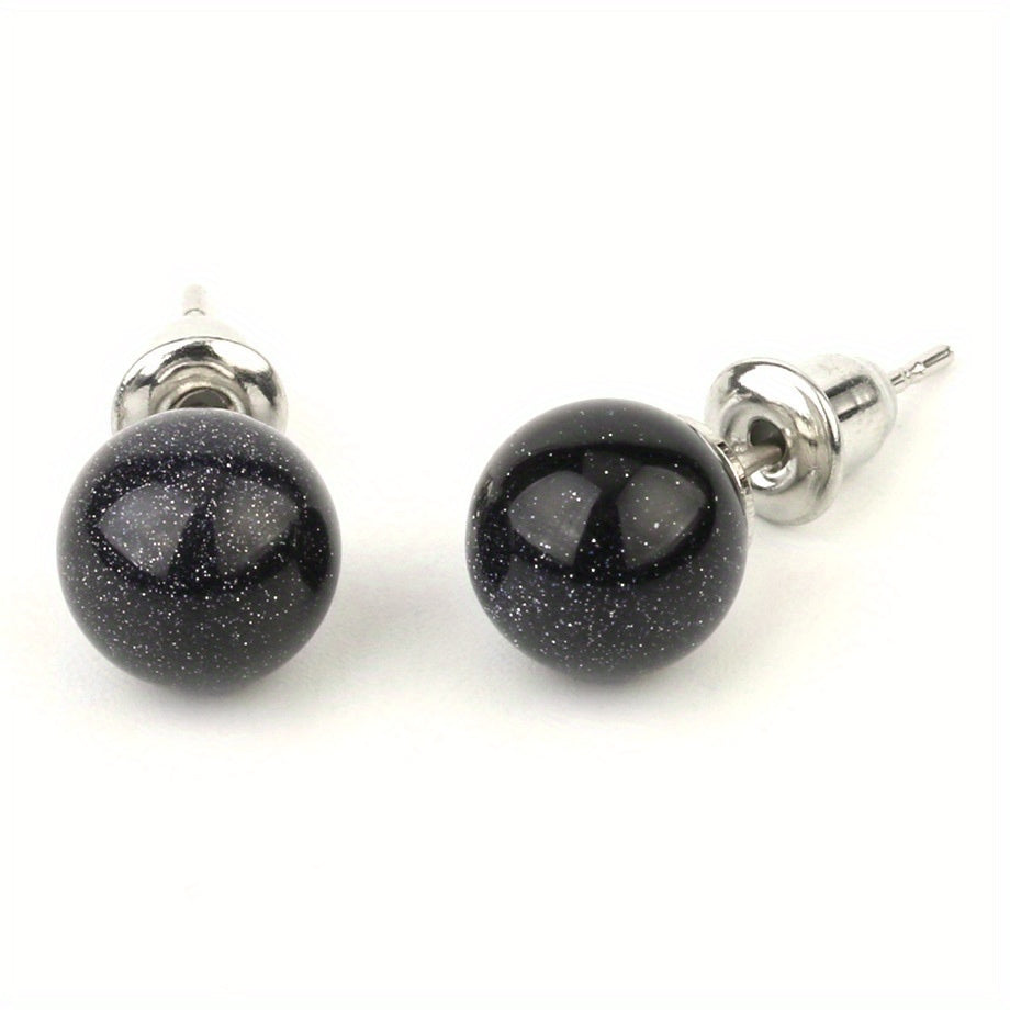 These stud earrings feature round ball beads made of natural stone, perfect for men's jewelry accessories.
